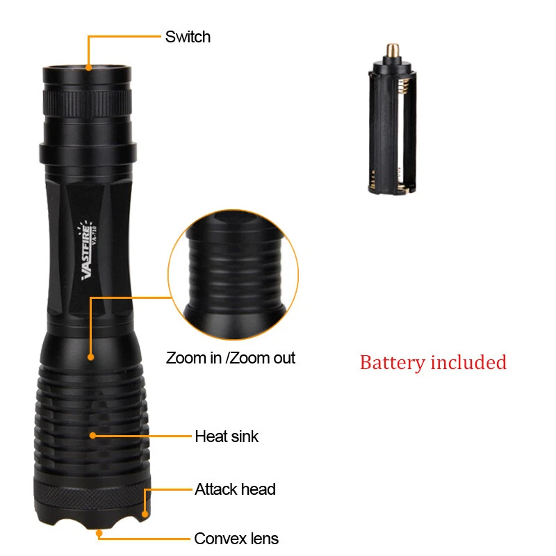 Material: Aluminum Operating Time: 1-5 Hours Voltage: 5 V Features: Adjustable Focus, Audible Alarm, Batteries Included, Handheld, LED, Rechargeable, Red light, Shock Proof, USB Rechargeable, Waterproof, With Mount, With Wrist Strap Model: light Item Height: 46 mm Lighting Technology: LED Number of LEDs: 1 Item Width: 46 mm Battery Included: Yes MPN: Does Not Apply IP Rating: IP48 Brand: VASTFIRE Number of Lights: 1 Item Length: 150 mm Color: Black Operating Range: 800 Yards Item Weight: 120 g Seller Notes: “Battery & Charger Included” Power Source: Battery Type: Light