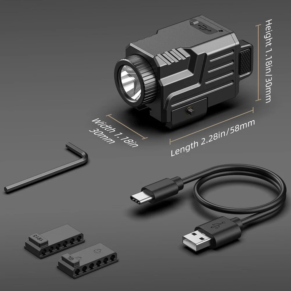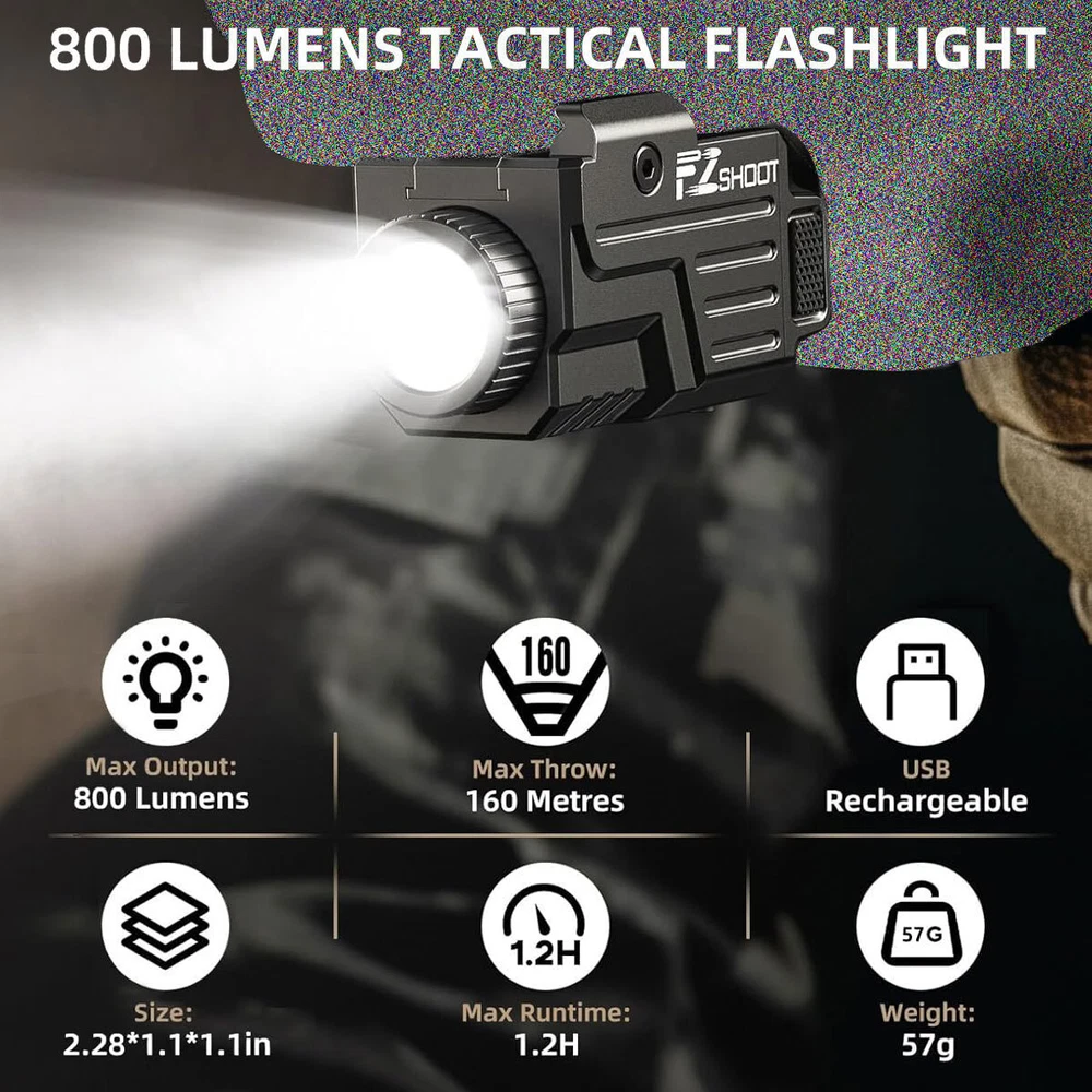 Store category Sign Up Now ! You may also like 800Lumen Tactical Flashlight Rechargeable Gun Light for Pistol Handgun Picatinny Product Details Special Feature:Long Range, Lightweight, Adjustable Light Modes, Rechargeable Color:Black Power Source:Battery Powered Light Source Type:LED Material:Aluminum, Polymer About this item Stable Light - EZshoot rechargeable pistol light has a 800 lumens light with 160 meters beam distance, which is suitable for home defense, farm defense, hunting, outdoor lighting, day and night use, etc. Lightweight And Compact - EZshoot picatinny light has a compact design and weighs only 57g. You won't feel any weight or fatigue when using it for a long time. USB Rechargeable - This gun light can work about 1.2 hour and adopts USB charging. The charging port is located at the bottom of flashlight for convenient charging without remove it from the rail. Please NOTE: It does NOT support fast charging cable and adapter, please use the 5V power adapter. Convenient Operation - Controlled by two ambidextrous switches, easy to turn on and turn off. Press the button twice quickly to switch to strobe mode. Status Indicator - The battery indicator light will inform you the charging status of handgun light in different colors : Red-Charging, Green-Full. Super Compatibility - This mini pistol light is compatible with Glock rail with slot and picatinny rail. Sliding rails design allow the flashlight to be freely positioned in the best position, fit for most compact and full-size guns. (Not fit devices without slot and rail) Package Included 1 x 800 Lumens Pistol Flashlight 1 x USB Charging Cable 2 x Slidable rails 1 x Alley Wrench Payment Delivery details return policy feedback Contact us Payment Great appreciate for prompt payment. Unpaid item will be filed without receiving payment in 14 days after listing ended. Shipment 1. All items will be shipped to buyer's ebay address. Before you pay, please make sure your address in ebay matches the address you would like us to ship to. 2. We will dispatch the item in business days (weekends and public holidays are not conginized as business days) after confirming your full payment. 3. As there are weight and cubage restrictions on international order, we are unable to offer you any discount. There is no local pickup service, no third party shipping carrier will be used. 4. Import duties, taxes and charges are not included in the item price or shipping charges. These charges are the buyer's responsibility. Please check with your country's customs office to determine what these additional costs will be prior to bidding/buying. Terms Of Sales 1. We are committed to give you the best customer service possible. If the item disappoints you for any reason, please contact us and we'll assist you with a prompt solution. We'd like to settle any problem in a friendly manner. 2. We want to make sure you are happy with our item. If you want to return the item for any reason, contact us within 14 days from the delivery date and we will give you a refund or exchange. Only unused, undamaged and original condition item can be qualified for a return. Buyer is responsible for return shipping fee. Please contact us to get a RMA number BEFORE sending out your return. Goods without RMA number will NOT be accepted. Please write the RMA number on the returning package. 3. We will not be liable to customer for any damages beyond the amount of money that customer actually paid us. About us Our aim is to offer our clients items with high quality and fast delivery, also our price will be reasonable. Contact us 1. We are care about our valued buyers. Please contact us through email with any questions or concerns. We will reply your messages within 2 business days. Emails, which are received at weekend, will be replied on Monday. If you do not receive a response in expected time period from us, please check your junk or spam mailbox. 2. If you are happy with our item and service, please do leave us positive feedbacks and 5 stars rate. Please email us before leaving any 1 or 2 ratings, neutral or negative feedbacks or open any cases. We understand the concerns and frustrations you might have and we, of course, will do our endeavor to resolve the issues. Please give us opportunities to resolve any problems. We thank you for your effort to make this sale and purchase experience a happy one!