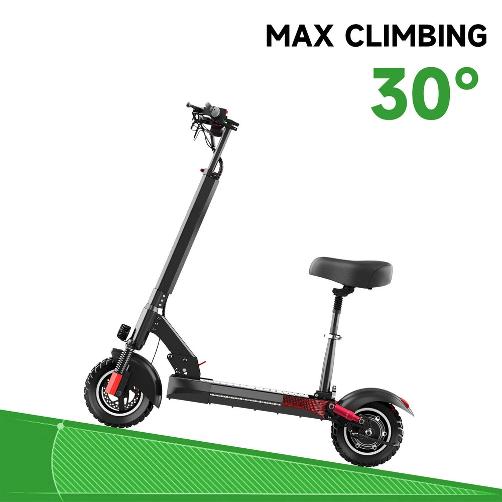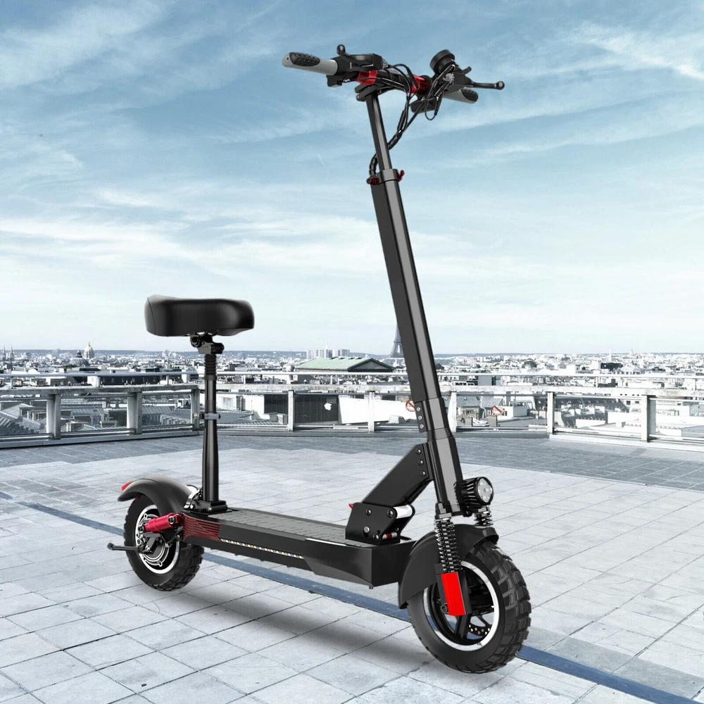 This scooter is a beast! The 800W motor delivers smooth, powerful acceleration, and the 10" off-road tires handle rough terrain effortlessly. With a top speed of 45km/h and a 55km range, it's perfect for commuting or adventure. The sturdy seat adds comfort, and the dual disc brakes ensure safety. The LCD display keeps you informed, and the IP55 waterproof rating means no worries in light rain. At 24kg, it's lightweight yet durable, supporting up to 150kg. Absolutely worth every penny—fun, reliable, and built to last!