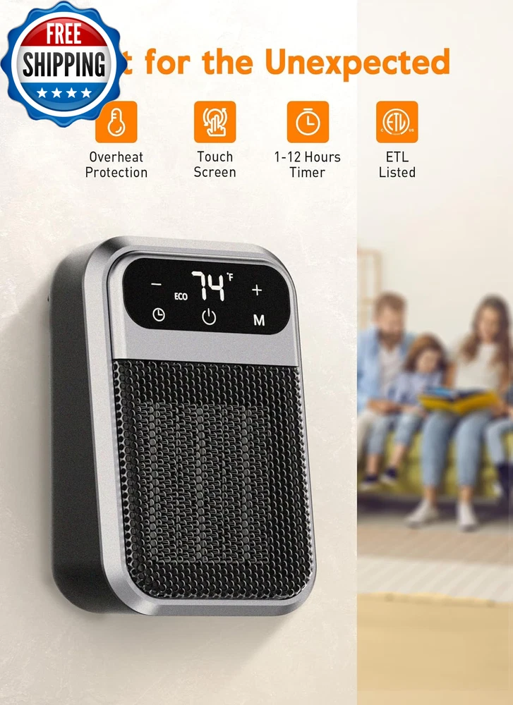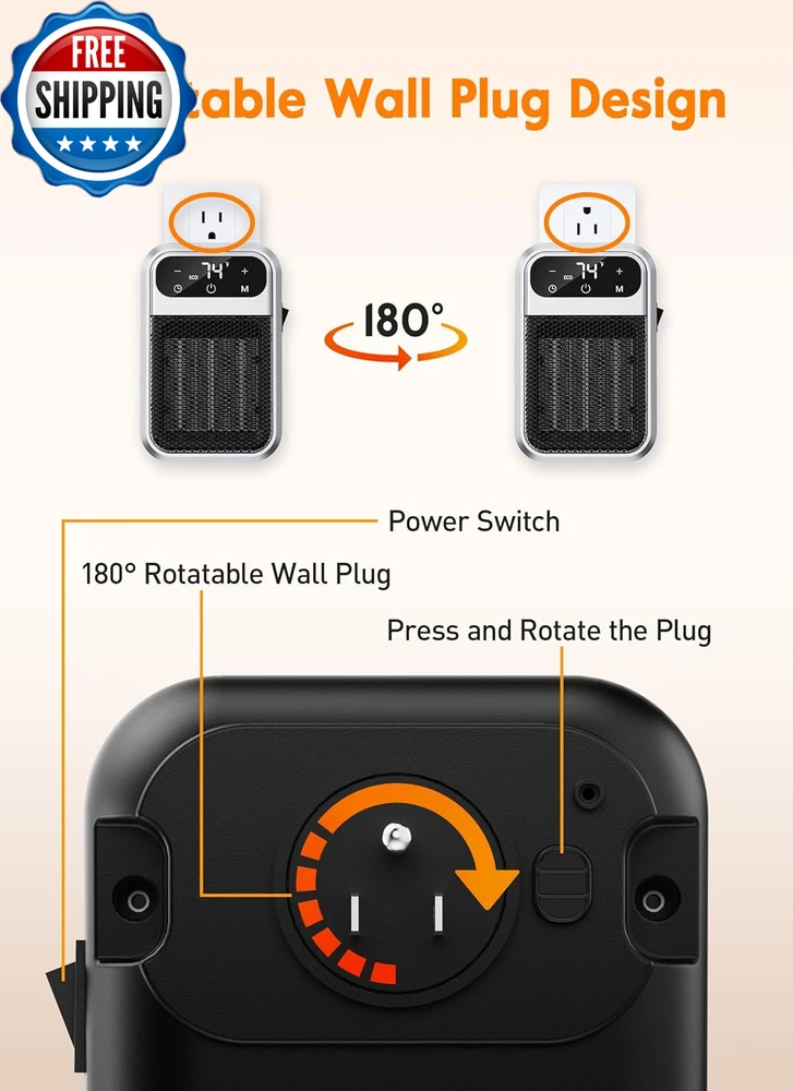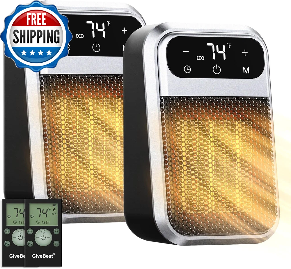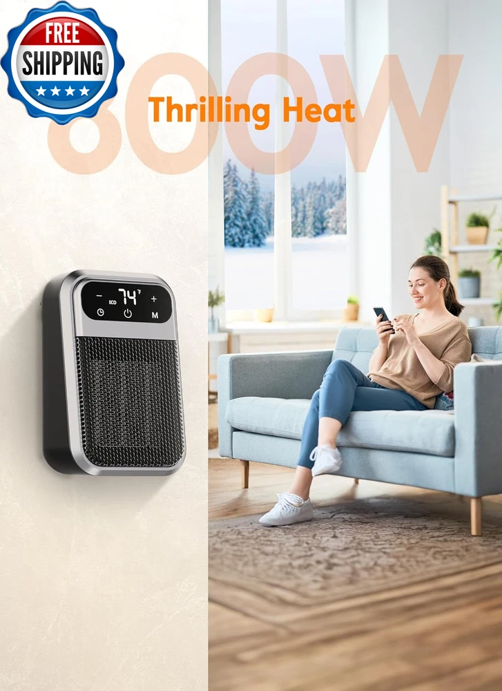 800W Wall Outlet Space Heater with Remote,Led Display Small Plug in Electric Heater with Adjustable Thermostat and Timer for Rv and Home Office Bathroom Indoor Use 【Low Energy Consumption】 The heater runs on 800-watt low wattage, more energy-saving and cost-effective than those high power-consuming space heaters. Besides, it will not overload the electrical circuit great for people living in a mild climate.Extremely quiet to heat up 100 square feet room well. 【Remote control and LED Display】 Givebest upgraded wall Outlet heater comes with remote,convinient for you to control the temperature or timer function in your house. And the LED screen can give you a more clear info about the environment of your room. 【180°Rotatable Plug】 The plug of the space heater is able to rotate 180° to accommodate power sockets in different condition and positions. If your power outlet is upside down, just rotate the plug to fit the outlet. 【Safety Overheat Protection】Safety certified,heat up your day and night without worries.Made of quality-assured flame retardant material, this electric heater achieves zero safety hazard. Overheat protection will shut heater off automatically when overheating. 【Faster Heat ande Quiet Than Ever】Brushless DC motor and 7 aerodynamic not only can blade smooth out airflow,delivering soft warmth but also can ensure heat up more efficiently with up to 800W working power, reaching your desired temperature immediately. 【Small Enough】3.9 x 3.5 x 6.5 inch compact size makes it easy to carry it around wherever I want without any wires. The Safety certified plug in heater mounts right on the receptacle and it doesn’t take up floor space or have a cord laying on the floor to trip on. Modern look make it blend well in a living room or bedroom or other areas of the house since it's not a big eyesore like a space heater. Product Description Amperage 6.67 Amps Item model number MH-20 Room Type Bedroom, Home Office, Study Room Indoor/Outdoor Usage Indoor Mounting Type Wall Mount Color Remote Form Factor Wall-mounted Recommended Uses For Product Office, Home Power Source Corded Electric Heating Method Forced Air Item Weight 3.52 ounces Batteries required No Fuel Type Electric Voltage 120 Volts Item Weight 01 Kilograms Heat Output 800 Watts Special Feature Remote Control, Overheat Protection Product Dimensions 1"D x 1.1"W x 1.2"H Burner type Radiant Shipping Fast shipping is very important for us. Our standard US shipping service is FREE. Your order will be shipped within 2-3 business days upon full payment received. Your order will be delivered within 2-3 business days after the handling time. We only ship to the confirmed PayPal address. We reserve the right to cancel any order for any reason at any time. We are not responsible for undeliverable addresses. Returns and payment We offer a 30 days return policy from checkout winning date. We allow only PayPal as payment method FeedBack Your feedback very important to us, after you get your package and you are satisfied with our service please leave us positive feedback If you have any problem with your order / any questions please before leave any type of feedback Please visit our eBay store to check out other items for sale! Thank you for shopping at our store.