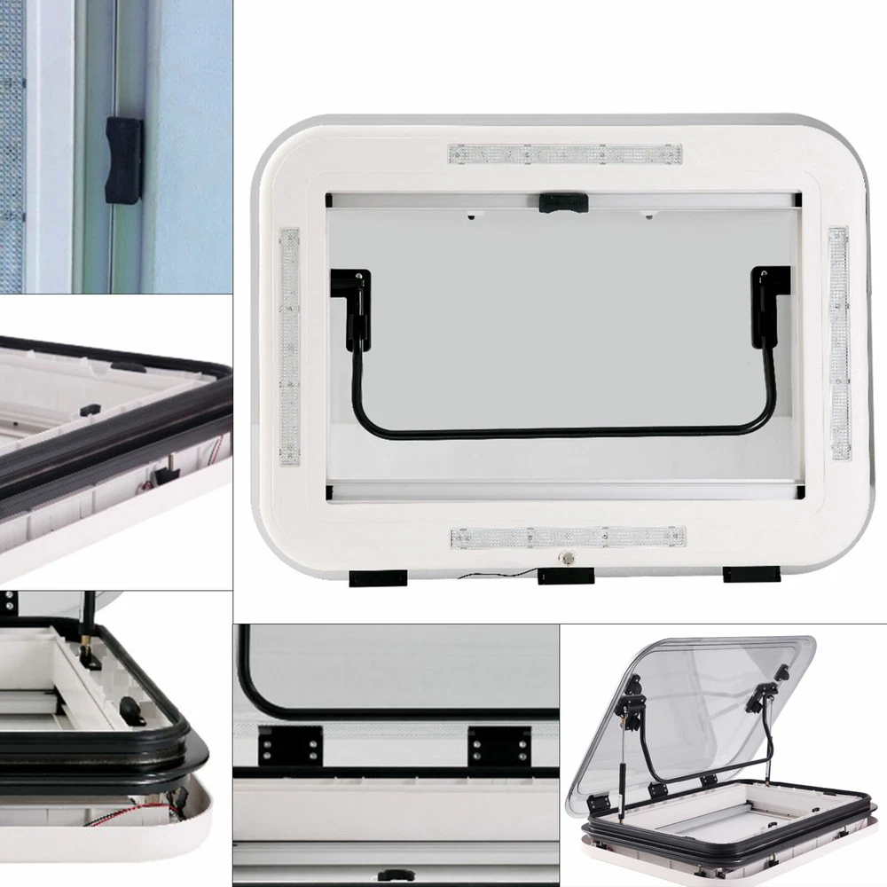 Roof Window Hatch RV Caravan Trailer Skylight Vent Hatch w/LED Light 800mm*500mm 800*500mm: Ordering Size (W x H): 800x500mm(31.5 x19.7 Inch) Cut Hole Size (W x H): 800x500mm (31.5 x19.7 Inch) Overall Size (W x H): 874x574mm (34.4 x22.6 Inch) Details: Condition:New Model: MG16SL Type: Roof Window Main Material: High quality aluminum alloy top frame ABS inner frame with LED lights, Anti-UV double-layer hollow acrylic cover Opening Angle: 70 degree Installation Method: Clamping Installation Inner frame: White Glass: transparent gray Insect Net: White Sunshade: White Standard skylight adapts to wall thickness: 30-60mm Product function description: NOTE: Installation Manual Is NOT Included Professional Installation Is Highly Recommended Please be aware that the ordering size 800mmx500mm RV Roof Window Hatch Caravan Trailer Skylight Vent Hatch w/ Light US Welcome~ Roof Window Hatch RV Caravan Trailer Skylight Vent Hatch w/LED Light 800mm*500mm 800*500mm: Ordering Size (W x H): 800x500mm(31.5 x19.7 Inch) Cut Hole Size (W x H): 800x500mm (31.5 x19.7 Inch) Overall Size (W x H): 874x574mm (34.4 x22.6 Inch) Details: Condition:New Model: MG16SL Type: Roof Window Main Material: High quality aluminum alloy top frame ABS inner frame with LED lights, Anti-UV double-layer hollow acrylic cover Opening Angle: 70 degree Installation Method: Clamping Installation Inner frame: White Glass: transparent gray Insect Net: White Sunshade: White Standard skylight adapts to wall thickness: 30-60mm Product function description: NOTE: Installation Manual Is NOT Included Professional Installation Is Highly Recommended Please be aware that the ordering size is the Cut hole size, not overall size. Please cut the window according to the actual size of the skylight. It must be arc-shaped and there is a gap in the right-angle installation. Features: · 100% brand new and high quality,Durable. · Quick and easy for installation, · ABS inner frame with LED lights , · Easy Operation with gas lift spring · Anti-UV double-layer hollow acrylic cover · With anti-insect net and sunshade Main Functions: Open, close, ventilate, insulate, provide privacy, allow sunlight in, prevent insects, and good water seal. Besides, it is with LED lights for lighting function. Main Applications: Caravan, trailer, modified car, special vehicle etc. Package includes: · 1*RV Caravan Roof Window Hatch W/LED light Payment Delivery details Terms of sales About us Contact us Payment We accept ebay payment 。 Fees such as import duties, taxes are not included in the item price or shipping costs. These charges are the buyer's responsibility. Delivery details Shipping: 2-9 working days to: USA Terms of sales We maintain high standards of excellence and strive for hundred percent customer satisfaction. Feedback is very important to us. We hope that you contact us immediately before you give neutral or negative feedback, so that we can address your concerns. It is impossible to address issues if we do not know about them! About us Your satis faction is our ultimate goal. We work hard to earn your trust and future business. Our certified technicians have tested each item before shipping. The unit comes with 1 year limited warranty on all manufacturing defects. a) If you receive a defective item, you may return it or ask for a discount. Please contact us within 14 days after you receive the package. b) What you returned must be intact and in its original packaging as re? u. Customer is responsible for shipping costs of the returned item. c) We will cover the cost of shipping back t with the shipping rate indicated in the registration page. We will send you a new unit or refund the full payment you paid. Thank you. Contact us Business Hour Business Hour: Monday To Friday: 8:30 AM to 5:00 PM (Beijing China time) Due to time zones, our reply to your questions may not be immediately. But within above working time, we will reply your email within 24 hours. If it's non-workdays, please kindly be patient and wait till Monday. Please contact us with ebay message. Please feel free to contact us if you have any questions. Monday To Friday: 8:30 AM to 5:00 PM (Beijing China time) Due to time zones, our reply to your questions may not be immediately. But within above working time, we will reply your email within 24 hours. If it's non-workdays, please kindly be patient and wait till Monday. Please contact us with ebay message. Please feel free to contact us if you have any questions. On Jan 2, 2025 at 22:05:30 PST, seller added the following information: