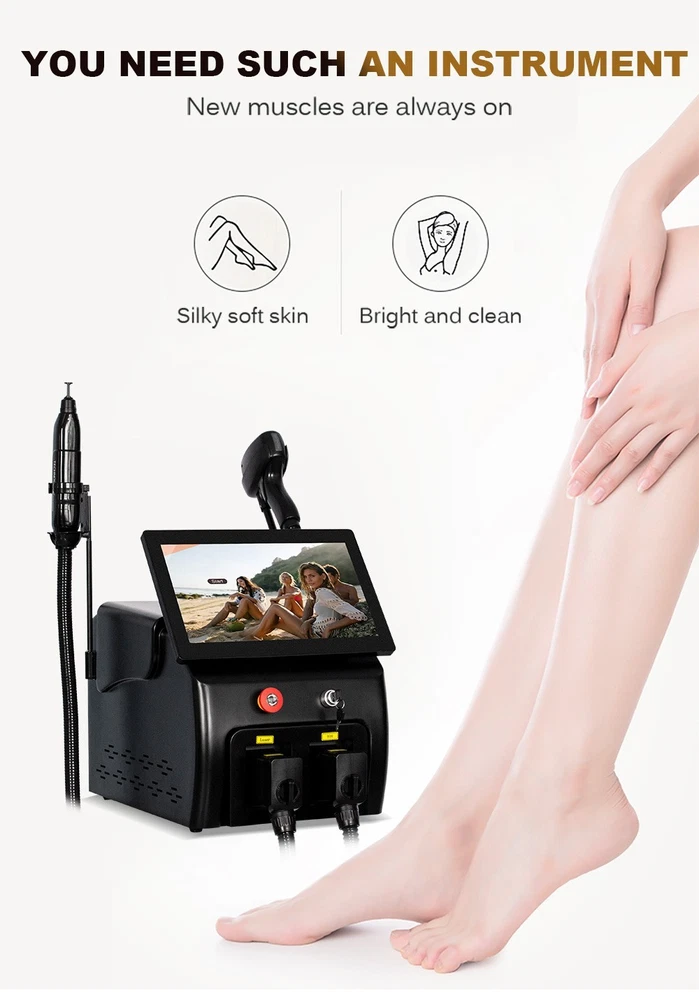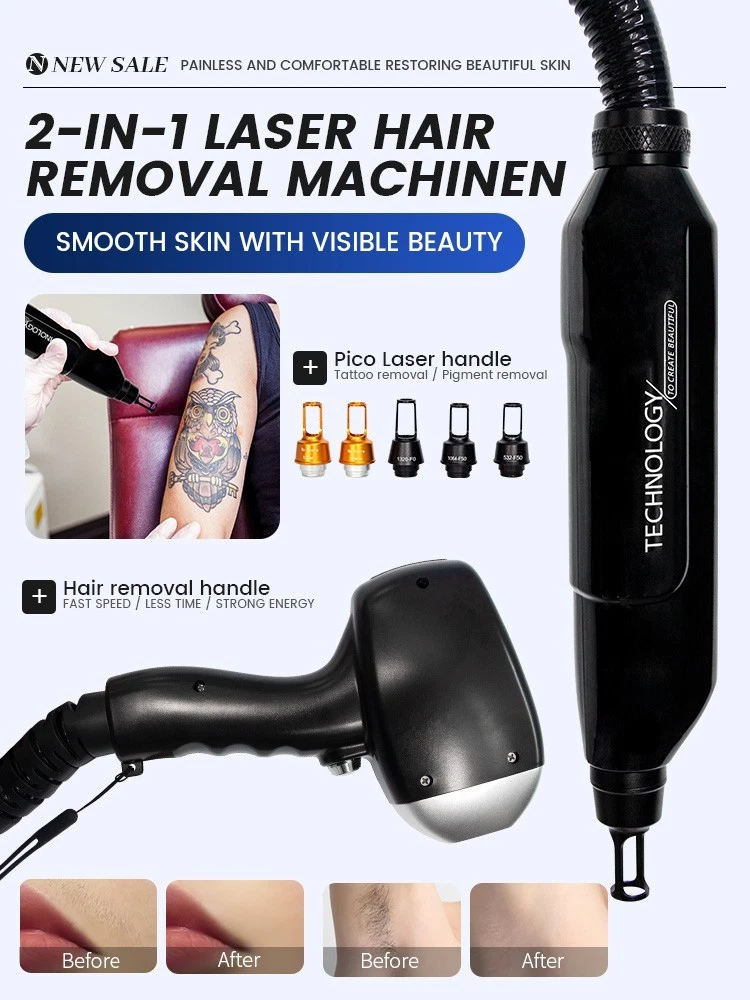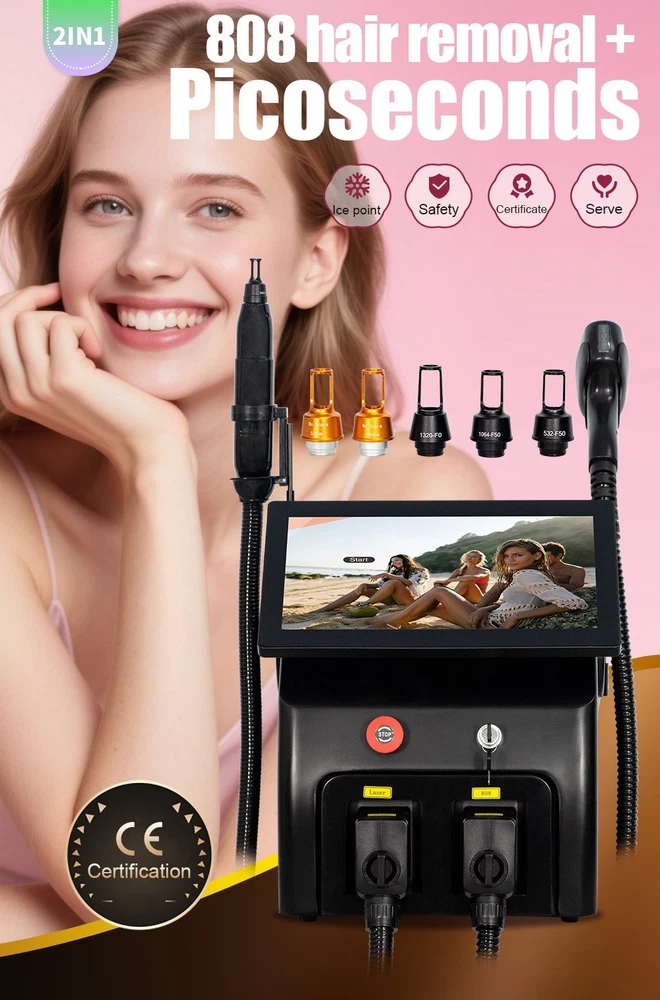 Diode Laser Hair Removal Machine | 2IN1 808+Picosecond System Diode Laser Hair Removal Machine 2IN1 808+Picosecond | 3 Wavelengths (755/808/1064nm) | Ice Cooling System Welcome to First Beauty Salon Boutique – the only brand owner, guaranteeing product quality and providing comprehensive after-sales service for worry-free shopping. Shop Smart, Shop Fast America Local stock | 3-9 day delivery 🚚 Fast, reliable shipping from US warehouses. 1-year warranty ✅ Shop worry-free – we’ve got you covered. Huge selection 🔍 Find everything you need in one place. Free home delivery 🏡 No hidden fees – delivered straight to your door. Technical Specifications Design Style: Portable Color: Black Handle: 1 Handle Laser Technology 808 Diode Laser + Picosecond Laser 3 Wavelengths: 755nm, 808nm, 1064nm Display 15.6-inch Color Touch Display Spot Size 12mm×25mm (with nose nozzle) Adjustable Settings Pulse width: 1-400 ms Energy: 1-380 J/cm² Frequency: 1-10 Hz Compatibility Languages: English, OEM (Spanish, Italian, German, French, Turkish) Skin Type: I-VI Skin Type Power & Cooling Laser module power: 1600W (OEM 2000W) Cooling: ICE Semiconductor Display Cooling Sapphire TEC Key Benefits 1 High energy output ensures no pigmentation risk – visible results after the first treatment, effective on all hair types. 2 Long laser pulse width enables heat accumulation in hair follicles for permanent hair reduction. 3 Safe for skin – minimal scattering, no damage to sweat glands, scar-free with zero side effects. 4 Ice-cooling system provides instant epidermal anesthesia for a painless experience. 5 Advanced thermostatic water cycle prevents overheating and ensures stable performance. 6 Self-checking and auto-protection mechanisms guarantee operational stability. 2IN1 Multifunctional System 808 Diode Laser Hair Removal Painless, ice-cooling technology for full-body hair removal. Targets hair follicles with 755nm/808nm/1064nm wavelengths for long-lasting results on all skin types (I-VI). Picosecond Laser Therapy Treat pigmentation issues: tattoo removal (red/green/black ink), freckles, sunspots, age spots. Also improves skin texture: whitening, wrinkle reduction, pore shrinking. Treatment Principles Hair Removal Principle Selectively targets melanin in hair follicles. Damages stem cells around follicles, inhibiting hair growth. Irreversible follicle destruction for permanent results (after multiple sessions). Picosecond Laser Principle Picosecond laser energy penetrates the skin layer. Shatters pigment into tiny particles. Particles are metabolized naturally, leaving no downtime or side effects. Whole Body Application Suitable for men & women, covering all body areas with unwanted hair or pigment issues. Facial hair, lip hair, beard Armpit, chest, hand hair Bikini line, leg hair Probe Function Introduction 532nm Probe Treats exogenous & endogenous pigment: red/light brown/green tattoos, freckles. 1064nm Probe Targets dark brown/bluish violet/black tattoos, deep pigmentation. Black Doll Probe Skin rejuvenation: shrinks pores, balances oil, tightens skin, reduces fine lines. Product Gallery After-Sales Service & Support Home Beauty Helper understands the importance of reliable after-sales support, which is why we offer a comprehensive package for our products. This includes free spare parts, online support, and video technical assistance, ensuring that you are never left in the dark. Free Spare Parts 24/7 Online Support Video Tutorials Local Warehouse Support
