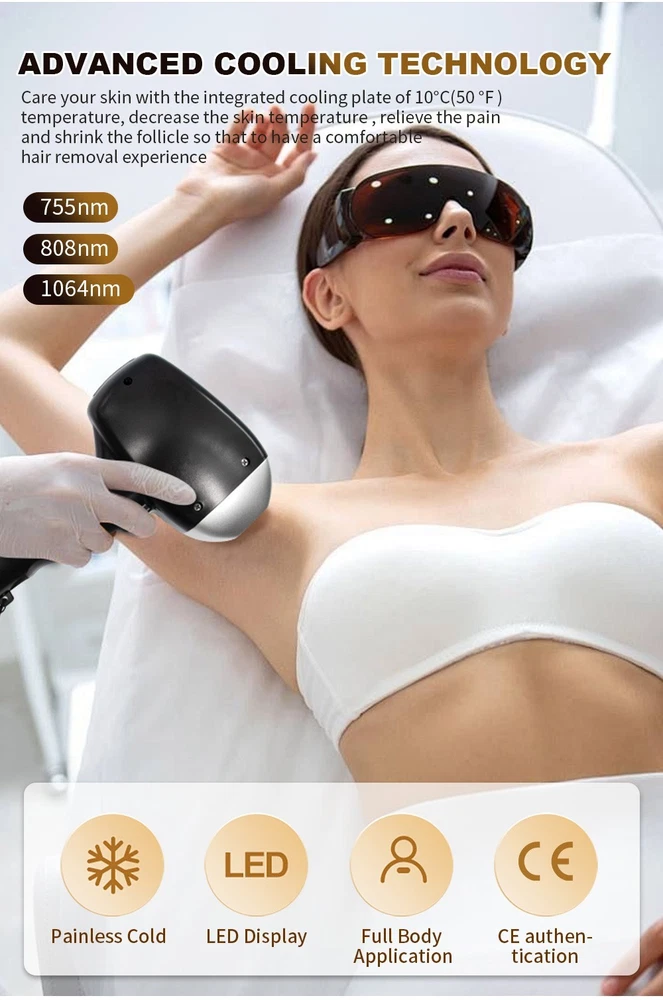 Certification: CE,RoHS Nozzle type: Metal Hair Removal Area: Armpit Bikini Arm Leg Hand Epilator Type: Laser Function: Skin Tightening, Hair Removal, Skin Rejuvenation, Tattoo Removal Feature 3: Whitening Body Area: Bikini, Body, Face, Legs, Underarms, Arms Color: White Number of Heads: 2 Feature 4: Skin Rejuvenation Number of Settings: 1 Flash Life: 999999 Country of Origin: China Features: Portable Feature 1: Permanent and painless hair removal Warranty: 12 months Hair Type: Black, Blond, Brown, White Item Type: Epilator Manufacturer Warranty: 1 Year Department: Men, Women Wavelength: 808nm/755nm/1064nm 3 waves Suitable For: Hair Removal Type: Laser Hair Removal Device Power Type: Electric Power Source: Corded Electric Feature 2: Hair Removal Brand: Unbranded