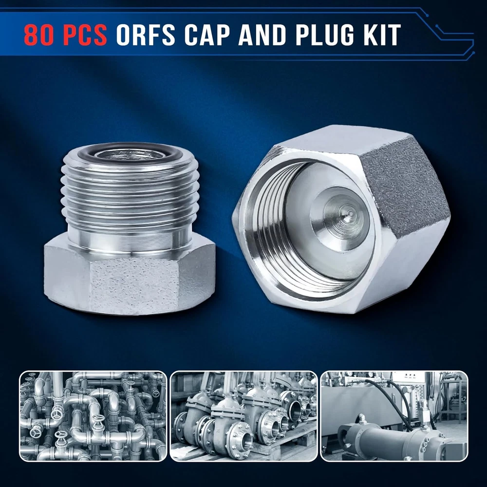 80PCS ORFS Hydraulic O-Ring Face Seal Cap and Plug Set for Industrial Hose Tube