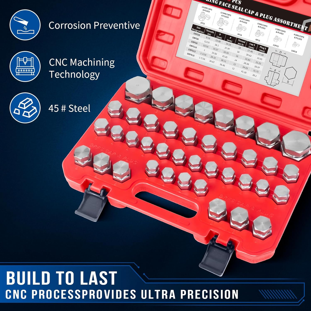 Store New Arrivals Add to Favorite View Feedback Contact 80PCS ORFS Master Industrial Hydraulic O-Ring Face Seal Cap and Plug Hose Tube and Pipe Fitting Kit Cap and Plug Kit Precision Threading in Dash Sizes 4 6 8 10 12 16 Description Item model number ORFS Part Number GJ-YY-002 Batteries Required? No Number of Pieces 80 Color Silver Material Carbon Steel Country of Origin China Connector Type Adapter Item Weight 9.79 pounds Thread Type NPT Model ORFS Exterior Finish Zinc Included Components cap and plug Extensive Variety: With sizes #4, #6, #8, #10, #12, and #16, this kit is equipped to handle any hydraulic task, making it an essential addition to your toolkit. Exceptional Compatibility: Engineered to integrate seamlessly with a broad spectrum of hydraulic equipment, ensuring reliable performance across different systems. Exceptional Compatibility: Engineered to integrate seamlessly with a broad spectrum of hydraulic equipment, ensuring reliable performance across different systems. Built to Last: Made from high-quality carbon steel and galvanized with zinc, our caps and plugs are designed to resist rust and corrosion, providing long-lasting durability and performance. Exceeds Standards: Gomjet’s hydraulic cap and plug kit surpasses ordinary hydraulic standards, ensuring that you receive the highest level of quality and reliability for your hydraulic maintenance and repair needs. Trust Gomjet for a comprehensive, reliable, and durable hydraulic solution that professionals can depend on. Product Description ABOUT US We offer the best prices around on high quality products. Our E-store includes media such as books, movies, music and games while offering electronics, toys, sporting apparel, clothing, tools, general home, garden items and more. SHIPPING We are always working hard to ensure your package arrives as soon as possible. Please understand that some factors like weather, high postal traffic, and the performance of shipping companies are outside of our control. We offer free shipping to the lower 48 states and ship within 2 business days of payment, usually sooner. We do not accept P.O. Boxes. Please provide a physical address. For shipping outside of the continental USA, we only use eBay's Global Shipping Program.The item is shipped to KY and then sent to the rest of the world. International customers are responsible for all duties and taxes. Continue to check out in order to calculate costs for shipping the item to your country. Messages regarding eBay's Global Shipping Program MUST be directed at eBay EXCLUSIVELY. RETURNS We offer a 30-Day Return Policy on items which you are not completely satisfied with. You have the option for a full-refund or an exchange of the item. No returns are available on items shipped outside of the USA. PAYMENT We accept PayPal. CONTACT US This page content is yet to come Please ad us to your favorite seller and visit again later Thank You CUSTOMER SATISFACTION We try our very best to make sure every customer is completely satisfied. If there's a problem, message us! We're happy to help. WE ACCEPT Copyright © 2021 AutoDS. | All Rights Reserved