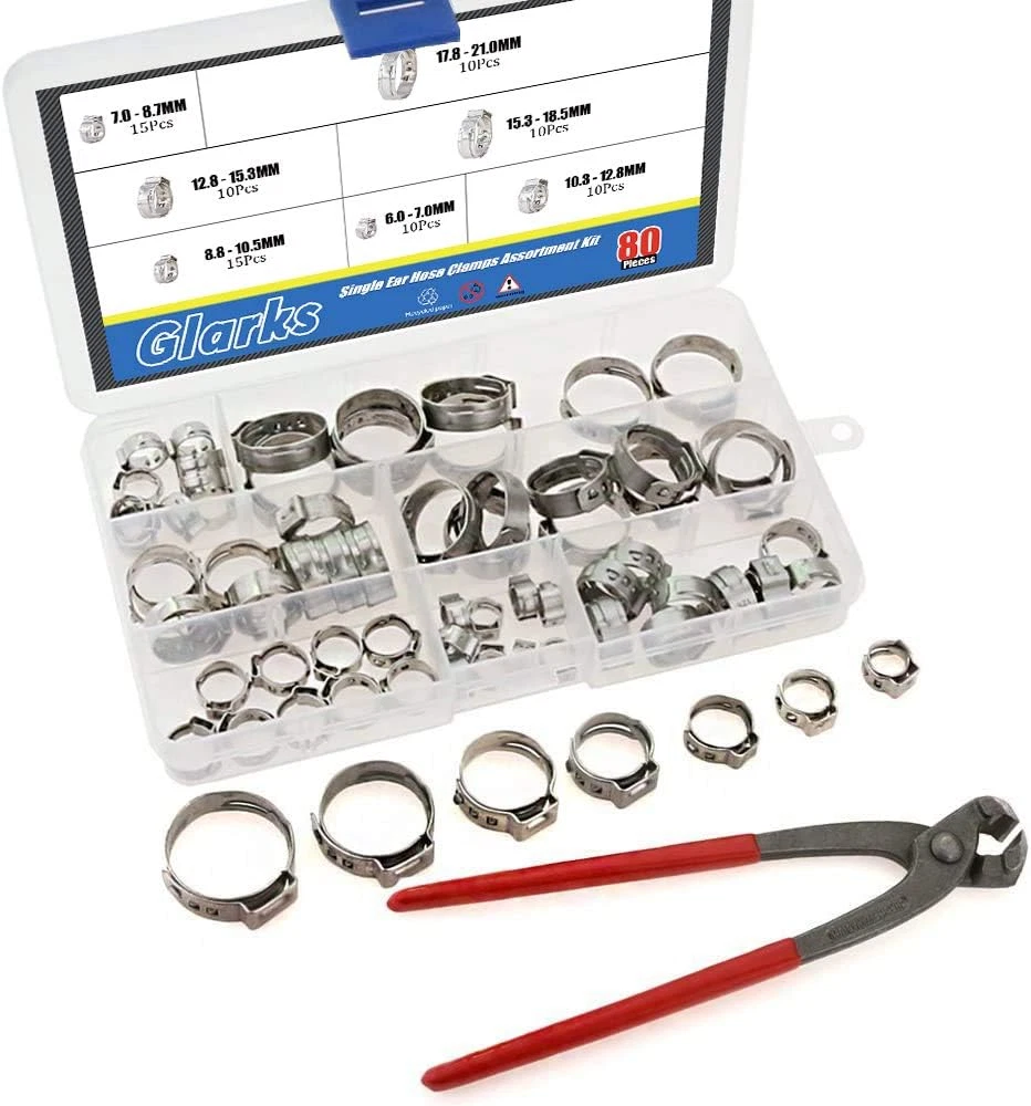 Store New Arrivals Add to Favorite View Feedback Contact 80Pcs 7-21Mm 304 Stainless Steel Single Ear Hose Clamps with Pincers Kit Description Part Number GLARKHG-80 Style Industrial Item Package Quantity 80 Color Multicolor Material Steel Batteries Required? No Item Weight 1.35 pounds Batteries Included? No Is Discontinued By Manufacturer No Package Dimensions 9.9 x 6 x 1.5 inches 1. Product Type: High precision single ear hose clamps with pincers Kit 2. Material: Single ear hose clamps made of 304 stainless steel, corrosion-resistant 3. Feature: Edge polished smooth can avoid damage to the hose,narrowband design providing a more concentrated sealing pressure 4. Application: Hose clamps used to seal various types of hoses, pincers can increase clamp force 5. Package: 80Pcs different size of hose clamps and pincers in a square paper box Product Type: High precision single ear hose clamps with pincers Kit Material: Single ear hose clamps made of 304 stainless steel, corrosion-resistant Feature: Edge polished smooth can avoid damage to the hose,narrowband design providing a more concentrated sealing pressure Application: Products are used for rubber hose, plastic tubing, electrical cable, welding, and equipment hoses Package: 80Pcs different size of hose clamps and pincers in a square paper box Hose Clamp Listing: 6-7mm -------------------- 10pcs 7-8.7mm ------------------ 15pcs 8.8-10.5mm -------------- 15pcs 10.3-12.8 ----------------- 10pcs 12.8-15.3 ----------------- 10pcs 15.3-18.5 ----------------- 10pcs 17.8-21 -------------------- 10pcs A Pair of standard jaw pincers: Length: 25cm / 9.8'', Weight: 385g / 13.5oz This product is professional single ear clamp pliers, made of high quality steel, adjust the position to the ear when used, clamping in one step, avoid the secondary pressure ABOUT US We offer the best prices around on high quality products. Our E-store includes media such as books, movies, music and games while offering electronics, toys, sporting apparel, clothing, tools, general home, garden items and more. SHIPPING We are always working hard to ensure your package arrives as soon as possible. Please understand that some factors like weather, high postal traffic, and the performance of shipping companies are outside of our control. We offer free shipping to the lower 48 states and ship within 2 business days of payment, usually sooner. We do not accept P.O. Boxes. Please provide a physical address. For shipping outside of the continental USA, we only use eBay's Global Shipping Program.The item is shipped to KY and then sent to the rest of the world. International customers are responsible for all duties and taxes. Continue to check out in order to calculate costs for shipping the item to your country. Messages regarding eBay's Global Shipping Program MUST be directed at eBay EXCLUSIVELY. RETURNS We offer a 30-Day Return Policy on items which you are not completely satisfied with. You have the option for a full-refund or an exchange of the item. No returns are available on items shipped outside of the USA. PAYMENT We accept PayPal. CONTACT US This page content is yet to come Please ad us to your favorite seller and visit again later Thank You CUSTOMER SATISFACTION We try our very best to make sure every customer is completely satisfied. If there's a problem, message us! We're happy to help. WE ACCEPT Copyright © 2021 AutoDS. | All Rights Reserved