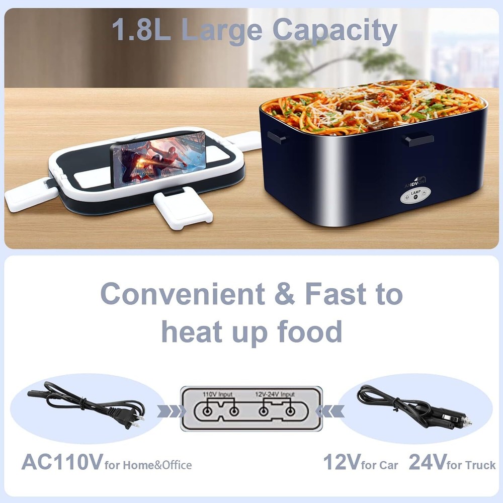 80W 1.8L Portable Electric Lunch Box Heater for Adults Large Capacity Warming Container