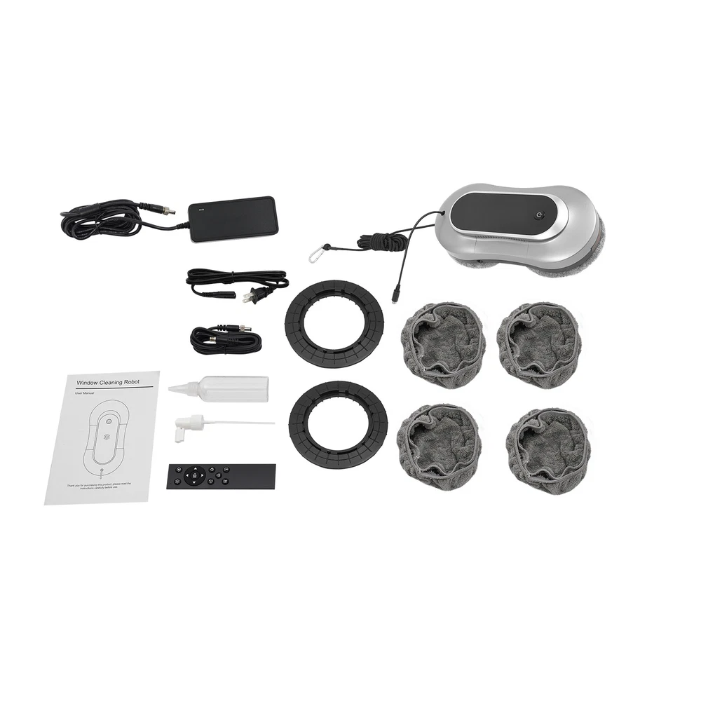 Package Included 1* Window Cleaner Robot 1* Water Bottle 1* Spraying Nozzle 1* Water Filling Nozzle 10* Cleaning Cloths 1* Remote Control 2* AAA Batteries 1* English Manual Other Needed Accessories 80W Bilateral Ultrasonic Nozzles Remote Smart Window Cleaning Robot Silver-gray Description This smart window cleaner robot with a strong adsorption design and intelligent path planning can easily clean both high-floor windows and hard-to-reach corners, bringing you a beautiful and clear window surface. It not only removes dirt powerfully but also effectively prevents falls, bringing you a safer and more convenient cleaning experience. Key Features Long Service Life: The product uses premium PE and ultrafine fiber, and adopts spraying paint and UV processes. It is highly resistant to corrosion, impact, wear, and tear, ensuring a stylish appearance and a long service life. Excellent Cleaning Performance: The four-way dual spray design, microfiber cloth, alternating spray and wipe design, and bilateral ultrasonic nozzles that spray 15μm fine water droplets can evenly wet and wipe the glass surface to give you the best cleaning results. It also supports dry erase, so you don't need to add liquid to the tank. Smart Design: The product can automatically plan the path and recognize the border, which is more intelligent and labor-saving. In addition, the product is equipped with an intelligent frequency conversion, which can automatically adjust the running status of the motor according to the actual needs of the equipment, saving energy and improving work efficiency. Strong Suction Power: The 2800-3200pa strong suction power ensures stable and smooth movement of the product on top of the smooth glass and avoids accidental falling. Safety Guarantee: The product comes with UPS power outage protection, which ensures that it will not fall off for 20 minutes without power so that you can take off the product in time in case of a power outage. In addition, the product also comes with an anti-drop power connector and a 13.78ft long 440.92 lbs high load-bearing safety rope, which effectively prevents the product from falling directly to the ground. Remote Control: With a remote control, you can conveniently start the product and control its working modes. Compact Size: The compact size(13.8*11*4.7in) allows the product to be cleaned in tight places and makes storage more space-saving. Buy with Confidence: We stand behind all our guests and look forward to assisting you with your purchase. It is our pleasure to answer your confusion and questions. The end of the story between us is not "we sell and you buy". Details Convenient Water Bottle: The water bottle comes with a fill nozzle and a spraying nozzle for easy filling and spraying of water on your windows. Reusable Cleaning Cloths: It comes with 10 cleaning clothes that can be replaced and reused after cleaning, which is a great money saver. Application This product is suitable for a variety of glass surfaces, including windows, mirrors, glass doors, window glass, tiles, and other smooth flat surfaces. Specifications Color: Silver Gray Material: PE, Ultrafine Fiber Process: Spray Paint, UV Motor Type: Brushless Motor Adaptor Input: 100-240V, 50/60Hz, 2A Adaptor Output: 24V, 3A, 72W Plug Type: US Standard Water Tank Capacity: 70ml/2.37oz Working Efficiency: 3min/m²(Cleaning 10.76ft² in 3 Minutes ) Power: 80W Speed: 28000rpm Suction Power: 2800-3200pa Safety Rope Load Bearing Capacity: 200kg/440.92lbs Noise: About 65dB Power Cord Length: 6m/19.69ft Safety Rope Length: 4.2m/13.78ft Remote Control Distance: 5m/16.4ft(2G Signal) Remote Control Battery Type: 2* AAA Batteries(Included) Assembly Required: No Product Size: 35*28*12cm/13.8*11*4.7in Package Size: 35*28*12cm/13.78*11.02*4.72in Gross Weight: 2.75kg/6.06lbs Net Weight: 1.16kg/2.56lbs Package Included 1* Window Cleaner Robot 1* Water Bottle 1* Spraying Nozzle 1* Water Filling Nozzle 10* Cleaning Cloths 1* Remote Control 2* AAA Batteries 1* English Manual Other Needed Accessories Notes Please check the size carefully before ordering. Please allow the slight color difference caused by the shooting light and 1-3cm error due to manual measurement, and make sure you do not mind before you order. Payment Delivery details Terms of sales About us Contact us Payment We accept ebay payment 。 Fees such as import duties, taxes are not included in the item price or shipping costs. These charges are the buyer's responsibility. Delivery details Shipping: 2-9 working days to: USA Terms of sales We maintain high standards of excellence and strive for hundred percent customer satisfaction. Feedback is very important to us. We hope that you contact us immediately before you give neutral or negative feedback, so that we can address your concerns. It is impossible to address issues if we do not know about them! About us Your satis faction is our ultimate goal. We work hard to earn your trust and future business. Our certified technicians have tested each item before shipping. The unit comes with 1 year limited warranty on all manufacturing defects. a) If you receive a defective item, you may return it or ask for a discount. Please contact us within 14 days after you receive the package. b) What you returned must be intact and in its original packaging as re? u. Customer is responsible for shipping costs of the returned item. c) We will cover the cost of shipping back t with the shipping rate indicated in the registration page. We will send you a new unit or refund the full payment you paid. Thank you. Contact us Business Hour Business Hour: Monday To Friday: 8:30 AM to 5:00 PM (Beijing China time) Due to time zones, our reply to your questions may not be immediately. But within above working time, we will reply your email within 24 hours. If it's non-workdays, please kindly be patient and wait till Monday. Please contact us with ebay message. Please feel free to contact us if you have any questions. Monday To Friday: 8: