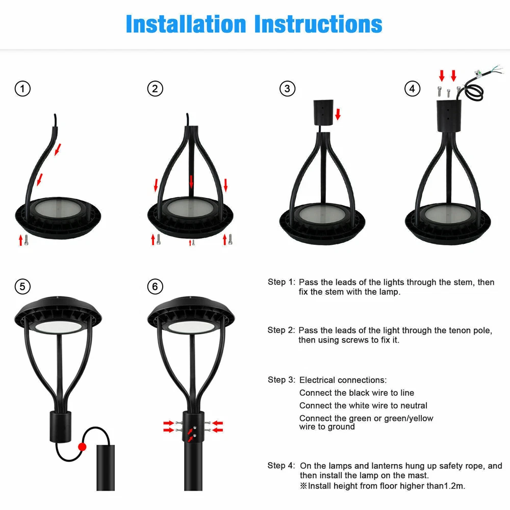 SAFE & SECURE SHOPPING 100% SATISFACTION GUARANTEED FAST SHIPPING 80W LED Post Top Light For Garden Street Circular Area Light DLC ETL Listed IP65 Product Description 80W LED Post Top Light For Garden Street Circular Area Light DLC ETL Listed IP65 Light Up Larger Area - The 80w light post bring 8100Lm with SMD3030 chips, up to 135lm/watt, AC 100-277V universal voltage and 120°beam angle. 5000K color temperature of lighting is a nice choice for street light illumination. Anti-shock, anti-moisture, no glare, no strobe light, no ghosting, protecting your eyes. Excellent Performance - High power factor >0.9, more than 50000hours lifespan, reduce your electricity consumption, save your electronic bill. Provides a continuous, efficient outdoor lighting environment. Commercial Grade Material - The DLC/ETL Listed post pole light fixture made of die-casting aluminum body + protective glass cover. The scientific design helps the exterior light post top to dissipate better, achieve the best use of the led lighting post. IP65 waterproof for drying, wet environment, sandstorms, snowstorms, and harsh weather conditions. Wide Application - The circular post top design give the lamp a uniform brightness and can be applied to a variety of outdoor scences, such as pathway, street, front yard, city expressway, trunk/rustic road, factories, playground, school, garden, courtyard, parking lot, public park, walkway, exterior, driveway, store, farmyard or any other commercial and industrial area. Installation and Warranty - The pole mount of our post area light fits for a 2 3/8-inch OD tenon & less than or equal to 3 inch standard pole, very easy to install and transfor(Please see the video on the product page for more installation info). KUKUPPO offer you lasting safety and reliability backed by a 5-year warranty. For a bulk order, email us in advance to get a different offer. Specifications: Rated Wattage: 80W Luminous Flux: 10800Lm Color Temperature: 5000K Protection Grade: IP65 Material : Aluminum Body+Glass Cover Input Voltage : AC100-277V 50/60Hz Dimension: Dia 460x625 mm Base: 2 Pins Wire Power Factor: >90% Beam Angle : 120 degrees Average Lifetime : More than 50000 hours Flexible Installation The pole mount of our post area light fits for a 2 3/8-inch OD tenon & less than or equal to 3 inch standard pole, very easy to install and transfor Commercial Grade Material DLC/ETL Listed quality. Scientific design helps the exterior light post top to dissipate better, achieve the best use of the led lighting post. Durable Support Rod Made of thick aluminum, stable and strong, waterproof and rustproof. High performance quality provides with lasting safety and reliability. Ultra Bright LED Chips With SMD3030 chips, up to 140lm/watt. Anti-shock, anti-moisture, no glare, no strobe light, no ghosting, protecting your eyes. Kindly Note Please note that the light can not be used IN the water. Please confirm the wire connection is right while installing. About Us Payment Shipping Terms Returns Contact Us About Us 1. 10 Years LED Light Manufacturer 2.Certified Safety LED Light Products 3.US Warehouse Fast & Convenient Delivery 30,000 sq.ft production area &100 employees professional team. UL,cUL,cETL,ETL,DLC approved products standard produce by certified request. 6 separately production line strictly control quality & speed production Professional Aging test machine&SMT Machine&IES test system&Reflow oven Payment 1. We only accept payment by PayPal . Your ebay address must match your paypal address. PO BOX can not delivered. 2. Please make payment within 7 days. If you don't need it, please inform us to cancel it, for eBay will open UNPAID dispute automatically in eighth day. 3. Paypal allows you to complete your purchase quickly and securely. It offers a variety of payment options including all the major card carriers. Shipping ★★★ ★ ★ USA Warehouse! 2-5days Fast shipping! 1. We will ONLY ship item to eBay physical Paypal address. Your eBay address must match Paypal address. 2. We ship daily Monday - Friday . All orders will be shipped within one working day after payment. 3. Tracking number will be upload on ebay within 24 hours after shipment. 4. Shipping Time: 2-5 working days for US buyers. ★ ★ ★ All of our products are shipped from our 3 different warehouses in the US.(KY/OH/TX) Terms 1. Please kindly CONTACT US via eBay message if there is any problem, instead of Open Case or Return Requests, We will always try our best to solve the problem for you. 2. We provide a 30 days satisfaction or return guarantee for exchange or refund. 3. The package must be in its original packaging and include all of the original accessories or items that came with it when returning an item. The item and package should be in original and perfect condition. Returns 1. Sellers pay return shipping costs. Sellers pay for return, replacement or exchange shipping if there's a problem with the item. For example, if the item a. Doesn't match listing description b. Damaged or defective when received c. Missing spare parts d. Counterfeit or imitation goods 2. Buyers need to pay return shipping costs. If the buyer changes mind about a purchase and wants to return an item, there may need to pay return shipping costs. For example a. Chose the wrong size or feel that the product is not suitable for buyers himself b. No need this product after received c. Find a more suitable price elsewhere than choose a return. Contact Us 1.Office Time: 9:30 - 18:30, Monday - Saturday (UTC+8) 2.Please contact us with eBay Messa ge . 3.We will respond you within 24 hours on business day. Your feedback is very important to us, please leave us a Positive Feedback with all 5-star for the Detailed Selling Rating when you received the item. If there is some problem about the product, please take communication with us before leaving neutral/negative feedback or opening ebay/paypal case, we will do our best to resolve your problem. We try our best to repl