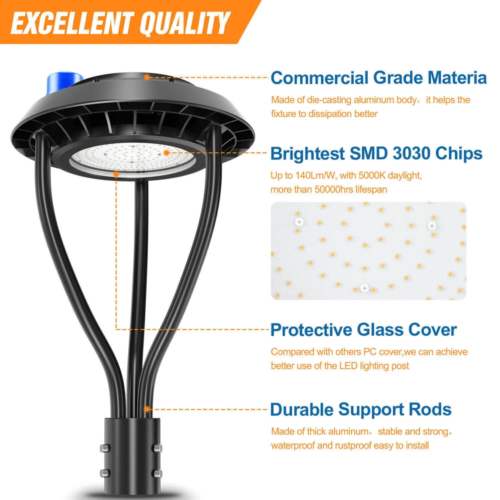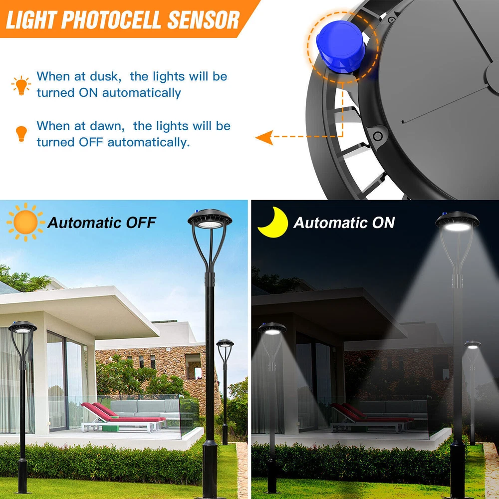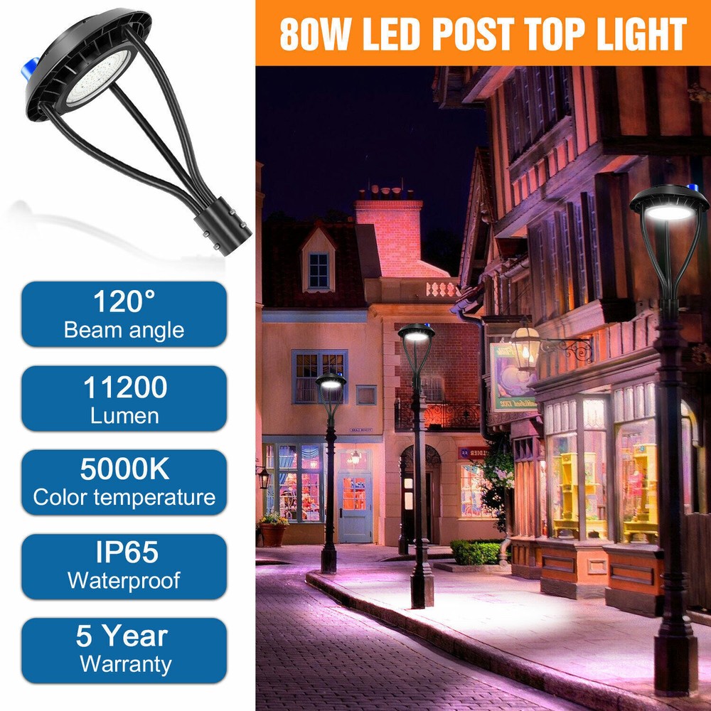 80W Dusk to Dawn LED Post Top Lights for Streets, Gardens, Pathways, and Parking Lots