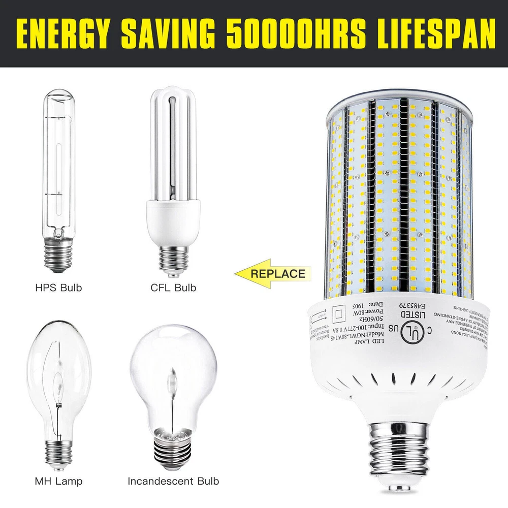 Product Description 80W LED Corn Cob Bulb Light Daylight for Warehouse Factory Workshop (350W Equiv) 【Super Bright】 80W led corn cob with 11000 lumens and 360 degree beam angle fits to be 300W HID Replacement retrofit. The installation height is recommended between 8ft and 10ft. 【90% Energy Saving】The LED corn light reduce more than 90% electricity consume than traditional light. Available for working voltage from 100VAC to 277VAC 【Quality Listed】The industrial quality light passed UL certification. It offers a safer using at home, commercial, industrial area. 【Easy Installation】E39 Base is easy to Connect directly a screw base. Must be remove or bypass the ballast in your electric circuit before installation. 【Long Lifespan】This bulb has 50,000 hours lifespan. Offering at least 11 years of lighting time if used 12 hours a day. 【Warranty】We provide with 5 years warranty for all our bulbs. If any problem or question about bulbs please contact us by email. We will reply within 24 hours. Product description The LED cob bulb are UL/ETL listed with outstanding industrial quality, superb energy efficiency, long lifespan and easy installation. Compared with traditional light bulbs, we provide brighter lighting and wider applications, but we have achieved up to 90% energy saving. So our LED light bulbs can help you save more than 90% of electricity bills. The design of Non-flickering No UV or IR radiation can provide higher stability and reliability when using the bulbs. Feature: 1.UL Listed 2.Replace 300W HID bulb 3.Instant lighting 4.6K high voltage surge protection 5.Non-flickering No UV or IR radiation Technical Data: 1.Lighting Technology: LED 2.Bulb Shape: Corn Cob 3.Rated Power: 80 watts 4.Input Voltage: AC100-277V 5.Bulb Base: E39 Base 6.Power Factor: >90% 7.Power Efficacy: 135 Lm/W 8.Color Temperature: 5,000K 9.Color Rendering Index (RA) : >80 10.PC Cover: Transparent 11.Materials:Aluminum+ASA 12.Lifespan: 50,000 hrs Wide Application: Indoor High Bay Area: warehouse, factory, workshop, shopping mall, church, garage, grocery, car wash-shop, gym, basketball court, tennis court, office, garden, community, back-yard, aircraft storage, farm, restaurant, airport, subway, convention center, swimming pool etc. Outdoor: Parking lot: shoebox, pole/box fixture. Street: cobra head, pole fixture. Gas station: canopy/High bay fixture. Yard/Garden: post top, floodlight/wall pack fixture, Billboard etc. About Us Payment Shipping Returns Contact Us SHENZHEN NUOGUAN TECHNOLOGY CO. LTD founded in 2010. We are high-technology comany specialized in manufacture Commercial and industrial LED light. Advanced production equipment and excellend R&D ability help us to combining service ,production sell together provide top-level products to our customers. 1. Payment is expected within 7 days of auction close. Or Unpaid Items will be forfeited per eBay . 2. Taxes may be applicable at checkout as states adopt new laws and regulations regarding sales tax collection. 1. We ONLY ship to USA . 2. Orders processed within 1-2 business day of payment verification. There’s no Delivery service or courier service on Saturdays, Sundays or Public Holidays. 3. We have 3 different warehouse in US,so due to stock status and time differences, we will choose to ship your item from our first available warehouse for fast delivery. 4. We offer Free Shipping within the Lower 48 states! All packages are sent via UPS or USPS.The delivery time for UPS Ground is typically 2-5 business days. We strive to ensure 100% satisfaction for each and every one of our customers. we offer a 30-day 100% money-back guarantee on all eBay orders. If your item isn't just as you wished, simply send it back to us and we'll refund or replace your item. Please note that all returns must be authorized by our Customer Service department. please contact us though message first if you have any problem. USA Warehouse. Fast shipping! We are appreciated your purchasing form our eBay store. Office Time: 9:30 - 18:30, Monday - Saturday (UTC+8) Please contact us with eBay Message. We will respond you within 24 hours on business day. About Us SHENZHEN NUOGUAN TECHNOLOGY CO. LTD founded in 2010. We are high-technology comany specialized in manufacture Commercial and industrial LED light. Advanced production equipment and excellend R&D ability help us to combining service ,production sell together provide top-level products to our customers. Payment 1. Payment is expected within 7 days of auction close. Or Unpaid Items will be forfeited per eBay . 2. Taxes may be applicable at checkout as states adopt new laws and regulations regarding sales tax collection. Shipping 1. We ONLY ship to USA . 2. Orders processed within 1-2 business day of payment verification. There’s no Delivery service or courier service on Saturdays, Sundays or Public Holidays. 3. We have 3 different warehouse in US,so due to stock status and time differences, we will choose to ship your item from our first available warehouse for fast delivery. 4. We offer Free Shipping within the Lower 48 states! All packages are sent via UPS or USPS.The delivery time for UPS Ground is typically 2-5 business days. Returns We strive to ensure 100% satisfaction for each and every one of our customers. we offer a 30-day 100% money-back guarantee on all eBay orders. If your item isn't just as you wished, simply send it back to us and we'll refund or replace your item. Please note that all returns must be authorized by our Customer Service department. please contact us though message first if you have any problem. Contact Us USA Warehouse. Fast shipping! We are appreciated your purchasing form our eBay store. Office Time: 9:30 - 18:30, Monday - Saturday (UTC+8) Please contact us with eBay Message. We will respond you within 24 hours on business day. You may also like 100W LED Barn Light with Dusk To Dawn Photocell Outdoor Garden Yard Night Light 69.05 USD Free shipping 200W UFO LED High Bay Light 