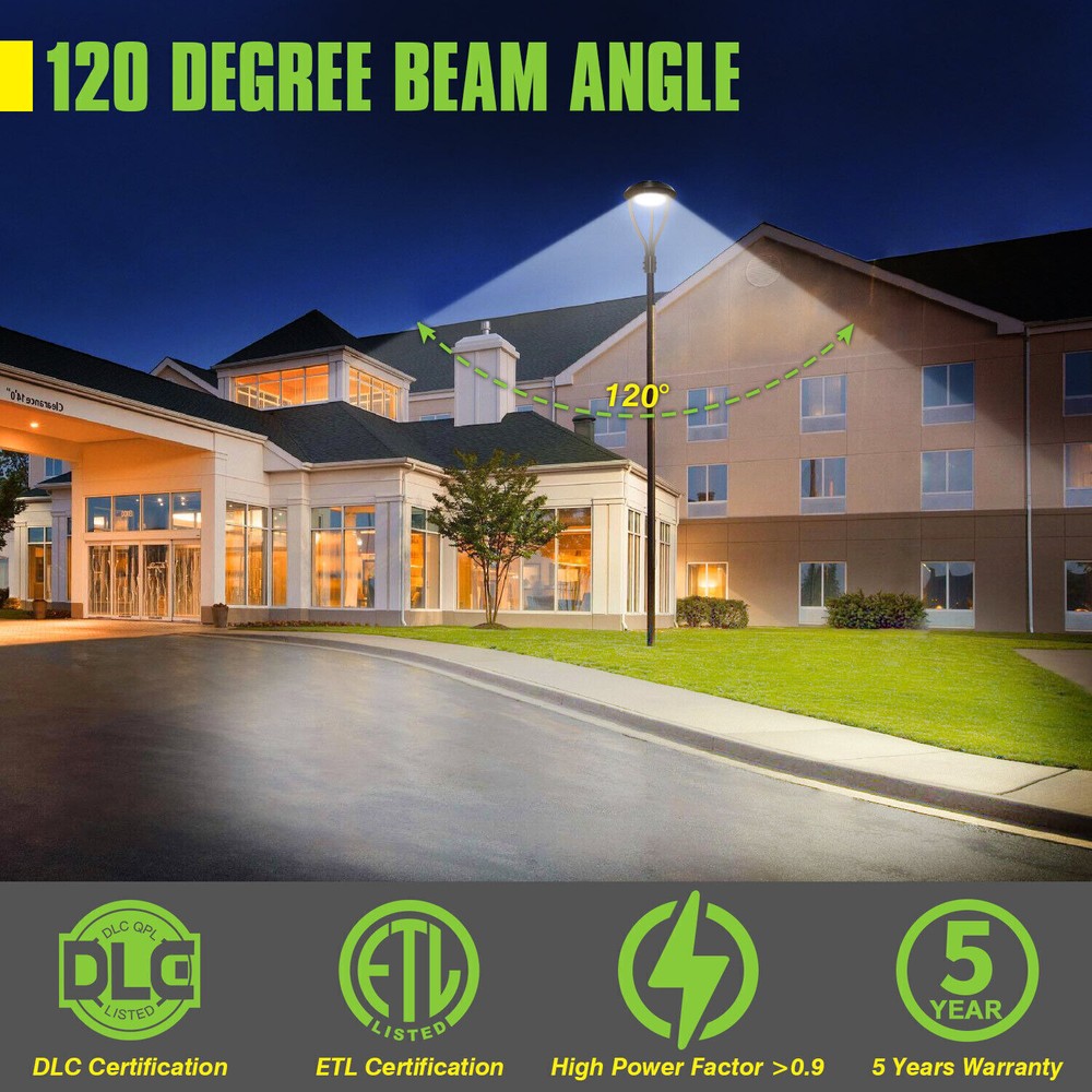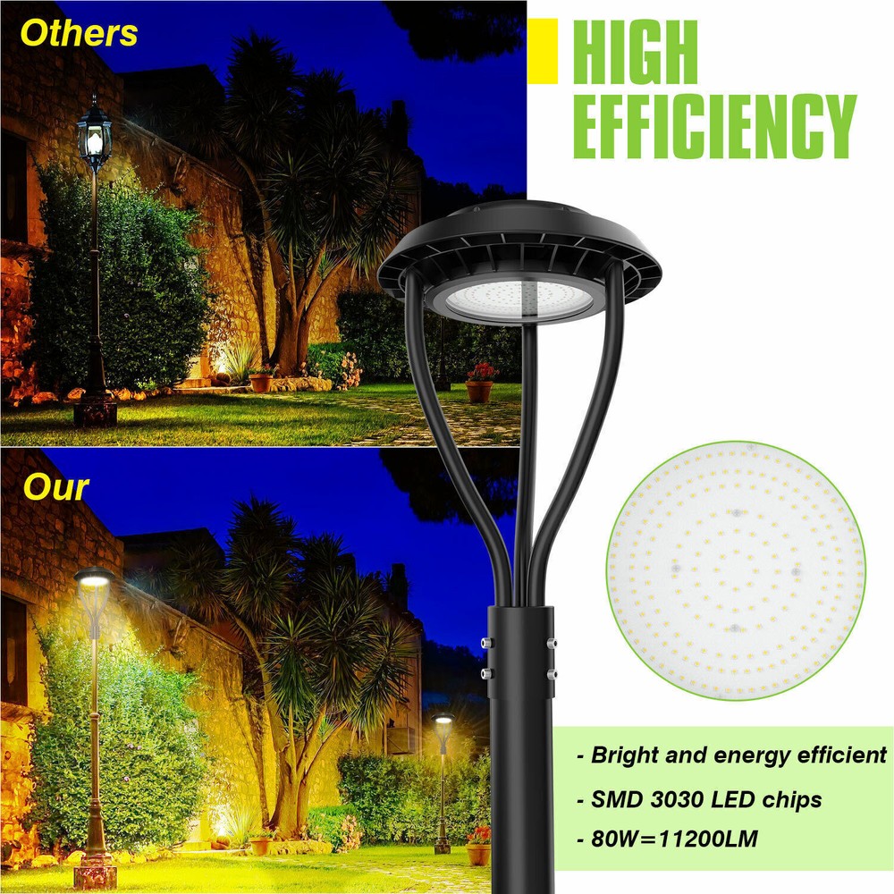80W LED Post Top Pole Light for Outdoor Pathways and Gardens, 400W Equivalent