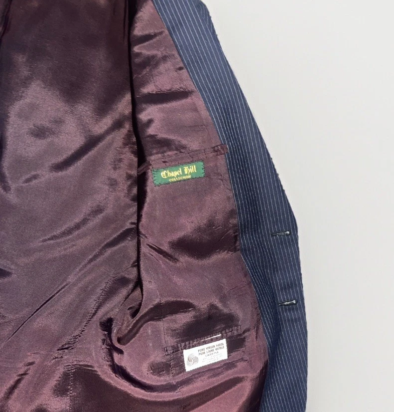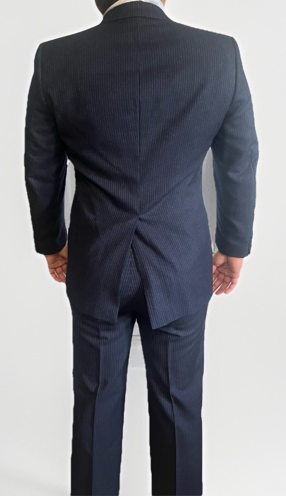 Department: Men Color: Blue Material: Wool Fit: Classic Brand: Bradmore Style: 3 Piece Type: Suit Size: 40 Size Type: Regular Theme: Classic Number of Pieces: 2 Piece Pattern: Striped Jacket Cut: Single-Breasted Jacket/Coat Length: Regular Chest Size: 40