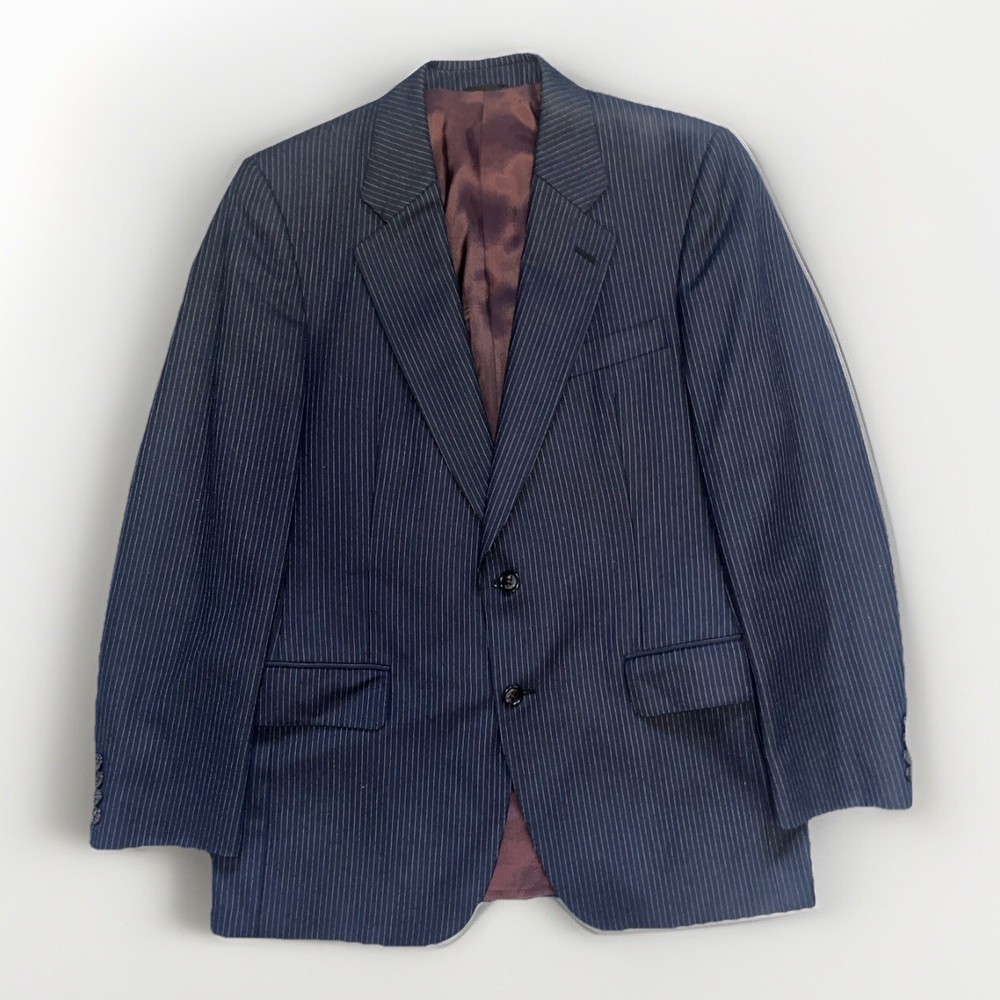 80’s Vintage Men's Blue Wool Pinstripe 2 Piece Suit 40S W34 Riverside Men's Shop
