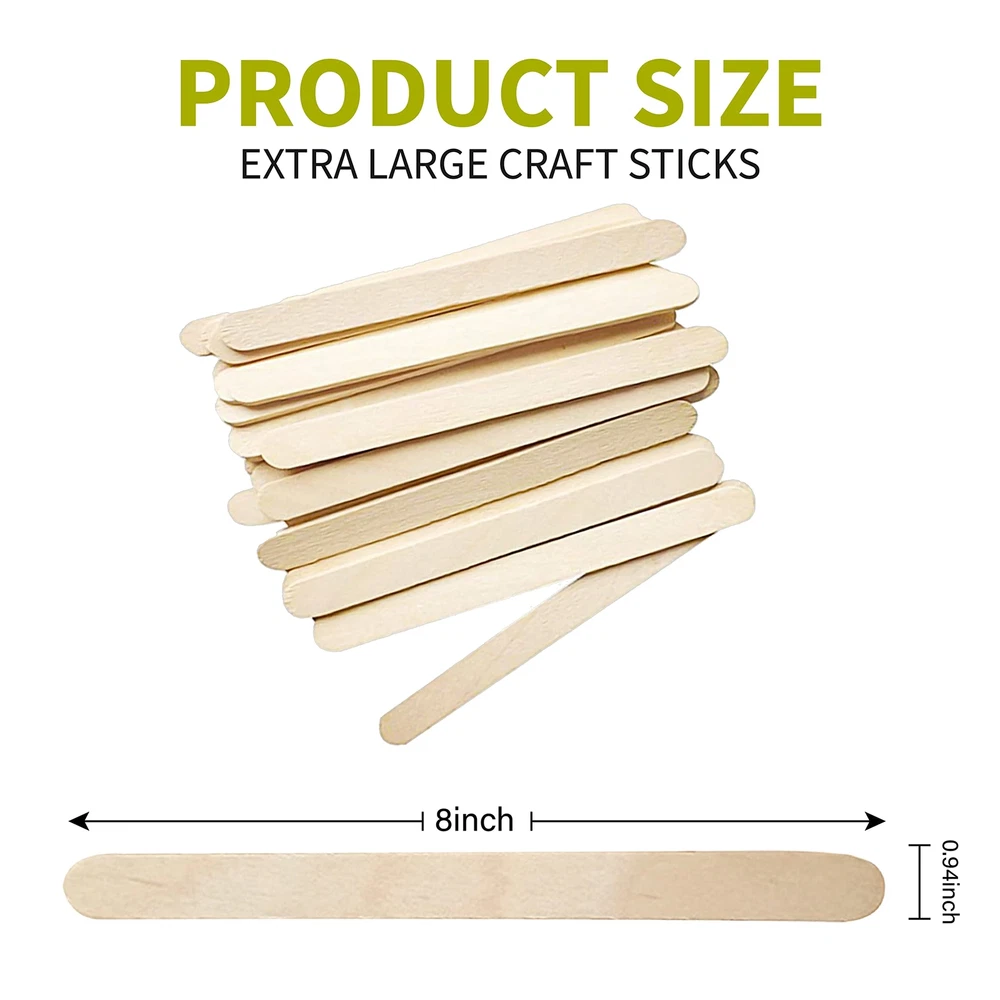 Package:100Pcs Jumbo Wooden Craft Sticks, The Jumbo craft sticks measure 8-inch x 0.94 inch What makes these sticks unique Design your own math craft stick manipulative. Teachers, parents, and kids will love using their own customize craft sticks to count, add, and subtract. The craft sticks measure 6-inch x 3/4 inch, perfect for labeling your vegetable garden or a label stick. Standard Sizes: 100 Pcs Jumbo Wooden Craft Sticks, The Jumbo craft sticks measure 8-inch x 0.94 inch Multifunctional Craft Sticks: Wooden craft sticks can be used in many ways such as craft supplies, candle kit, sample bags, popsicle bags, making a wooden box, toy box, and wood house. Adults could use this for a waxing applicator as well. Applicable Activities: Perfect for all your STEM educational activities. Design your own math craft stick manipulative. Teachers, parents, and kids will love using their own customize craft sticks to count, add, and subtract. Great for art projects, home decoration, party decorations, classroom activities, building projects. Special Material: Jumbo wooden sticks made of high quality natural wood,smooth and straight,the smooth round edges and the flat surface makes it easy to decorate,build,and create while keeping it safe for children. For Oral Use, Spreading Ointments, Mixing Medications or For Use As Small Splints.