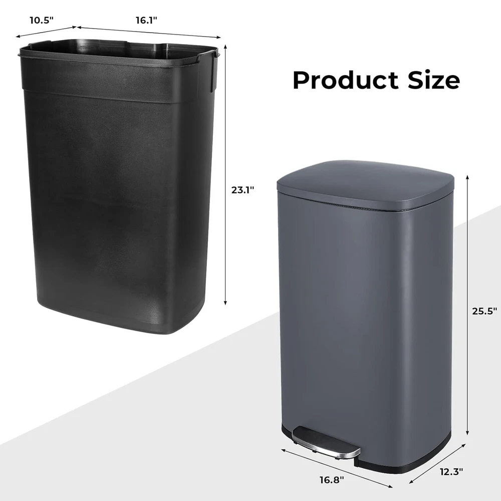 Description: Enjoy a clean and quiet time with your family with this stainless steel kitchen trash can. Stainless steel appearance, the rectangular shape gives the trash can a fashionable look. Pedal design allows you to throw garbage easily without bending over and touching the lid. A silent slow-down closing design allows you to hardly hear the sound when closing the lid. 5 colors, 3 sizes, offers a variety of options Features: Yiwsz-0 Your Best Online Business Partner 8/13.2/16 Gallon Kitchen Step on Trash Can Stainless Steel Garbage Can with Lid Description: Enjoy a clean and quiet time with your family with this stainless steel kitchen trash can. Stainless steel appearance, the rectangular shape gives the trash can a fashionable look. Pedal design allows you to throw garbage easily without bending over and touching the lid. A silent slow-down closing design allows you to hardly hear the sound when closing the lid. 5 colors, 3 sizes, offers a variety of options Features: This trash can is made of high-quality thick 410 stainless steel, sleek and durable. The widened and thickened stainless steel pedals make it convenient to open the trash can, hands free. The lid of the trash can is designed with ABS hydraulic deceleration, which effectively reduces the closing noise and does not make a popping sound. Each inner barrel can be easily removed for individual use. Specifications: 30L - 8 gal: Weight: 11.46 lbs Dimensions: 13.4'' x 9.3'' x 24.6'' (L x W x H) Capacity: 30L - 8 gallon Material: Stainless steel 410 (ABS) Inner bucket: Polypropylene (PP) 50L - 13.2 gal: Weight: 14.3LBS Dimensions: 16.8''x12.3''x25.5''(L*W*H) Capacity: 50L - 13.2 Gallon Material: Stainless steel 410 (ABS) Inner bucket: Polypropylene (PP) 60L - 16 gal: Specifications: Weight: 26.78 lbs Dimensions: 23.03" x 12.6" x 25.59"(L x W x H) Capacity: 60L - 16 Gallon Features: Anti-fingerprint Material: Body: Stainless steel 410 (ABS) Inner bucket: Polypropylene (PP) Package Included: 1x Trash Can Item Specifics Type Step On Trash Can Features Removable Compartment Room Kitchen, Living Room Item Length 13.4 in Item Width 9.3 in Item Height 24.6 in Material Stainless Steel, PP Payment We only accept Payoneer payment. Shipping We will ship out your item within 24-48 business hours after payment received; We don't process orders on weekends and holidays. Returns 30 day returns. Full / Partial Money Back, or Replacement. Contact Us If you have ANY problems, please feel free to let us know, we'll get back to you ASAP and do our bets to resolve it. Yiwsz-0 Your Best Online Business Partner DESCRIPTION PAYMENT SHIPPING RETURN POLICY CONTACT US Store Category Store Home Kids Slide Garbage Can Indoor Furniture Fitness Home & Garden Hot Item 60L / 16 Gal Dual Trash Can Stainless Steel Kitchen Garbage Bin Recycle Dustbin USD 129.99 8 Gallon Trash Can, Rectangular Step On Kitchen Trash Can, Stainless Garbage Can USD 63.99 60L / 16 Gal Dual Kitchen Trash Can,Stainless Steel Garbage Can Recycle Dustbin USD 129.99 60L Dual Trash Can Stainless Steel Step On Garbage Can Recycling Bin with Lid USD 116.99 8 gal Stainless Dual Trash Can Kitchen Step Garbage Can Classified Recycle Bin USD 79.99 New List Item Kids Art Table and 2 Chairs Toddler Craft Play Table W/ Storage Bins Paper Roll USD 159.99 900lbs 6in1 Weight Bench Set Foldable Adjustable Bench Press Full Body Workout USD 199.99 Collapsible Wagon Cart with Canopy Folding Garden Cart Heavy Duty Beach Wagon US USD 109.90 900lbs 6in1 Adjustable Weight Bench Set Folding Full Body Workout Bench Set USD 185.99 21.1 Gallon / 80L Automatic Trash Can Stainless Steel Motion Sensor Garbage Can USD 105.99 Help & Info Payment Policy Shipping Policy Return Policy FAQ About Us 8/13.2/16 Gallon Kitchen Step on Trash Can Stainless Steel Garbage Can with Lid Description: Enjoy a clean and quiet time with your family with this stainless steel kitchen trash can. Stainless steel appearance, the rectangular shape gives the trash can a fashionable look. Pedal design allows you to throw garbage easily without bending over and touching the lid. A silent slow-down closing design allows you to hardly hear the sound when closing the lid. 5 colors, 3 sizes, offers a variety of options Features: This trash can is made of high-quality thick 410 stainless steel, sleek and durable. The widened and thickened stainless steel pedals make it convenient to open the trash can, hands free. The lid of the trash can is designed with ABS hydraulic deceleration, which effectively reduces the closing noise and does not make a popping sound. Each inner barrel can be easily removed for individual use. Specifications: 30L - 8 gal: Weight: 11.46 lbs Dimensions: 13.4'' x 9.3'' x 24.6'' (L x W x H) Capacity: 30L - 8 gallon Material: Stainless steel 410 (ABS) Inner bucket: Polypropylene (PP) 50L - 13.2 gal: Weight: 14.3LBS Dimensions: 16.8''x12.3''x25.5''(L*W*H) Capacity: 50L - 13.2 Gallon Material: Stainless steel 410 (ABS) Inner bucket: Polypropylene (PP) 60L - 16 gal: Specifications: Weight: 26.78 lbs Dimensions: 23.03" x 12.6" x 25.59"(L x W x H) Capacity: 60L - 16 Gallon Features: Anti-fingerprint Material: Body: Stainless steel 410 (ABS) Inner bucket: Polypropylene (PP) Package Included: 1x Trash Can Payment Shipping Returns Contact Us We only accept Payoneer payment. We will ship out your item within 24-48 business hours after payment received; We don't process orders on weekends and holidays. 30 day returns. Full / Partial Money Back, or Replacement. If you have ANY problems, please feel free to let us know, we'll get back to you ASAP and do our bets to resolve it. All rights reserved.