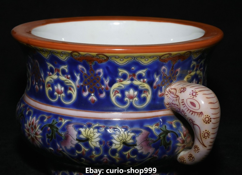 **** Welcome to our antique & Collectable Shop : Porcelain**** Description: Here is 8.2" Qianlong Enamel Colour Porcelain Elephant Animal Twin Ears Incense Burner .It is in good condition, and was created by skilled craftsmen in traditional style with fine handcrafts.This is a great piece of valuable collection, a valuable personal alter or a very good present. the handwork is very fine with incredible detailling. Don't miss out this chance to get it.Wish you good luck! Material : Enamel Colour Porcelain Size : Heigh t 3.9 Long 8.2 breadth 5.9 (inch) Condition Perfect Condition. Perfect, with no scratc hes, flaws or repairs. Weight: 1.0 KG----included the weight of packing materials Shipping cost to all over the world countries in Free Honored Customers: We are selling the collectibles products and crafts in Beijing ,China since 1993 and collected them all over the world all the time . In our shop the bronze sculpture, animal, vase, urn, flowerpot,Incense Burner.Table chair sets. Militaria goods. buddha statues, Bodhisattva Statues, Buddhist Ritual Items etc is our speciality .Many of the items we sell come from our own personal collection and have been in our family for a very long time .My great-grandfather was the first in this family to start collecting art & antiques when he still lived in San Xi and Tibet around 1922 ,some of the paintings he once collected can now be seen in museums around the globe.We won't make money from t he shipping cost, if you dislike the item when you receive it,we can refund all of your money to you within thirty days. Please confidence for bidding . We recommend the combine shipping and offer you an big price discount if you order more items together ! 2023.06.12 四 号