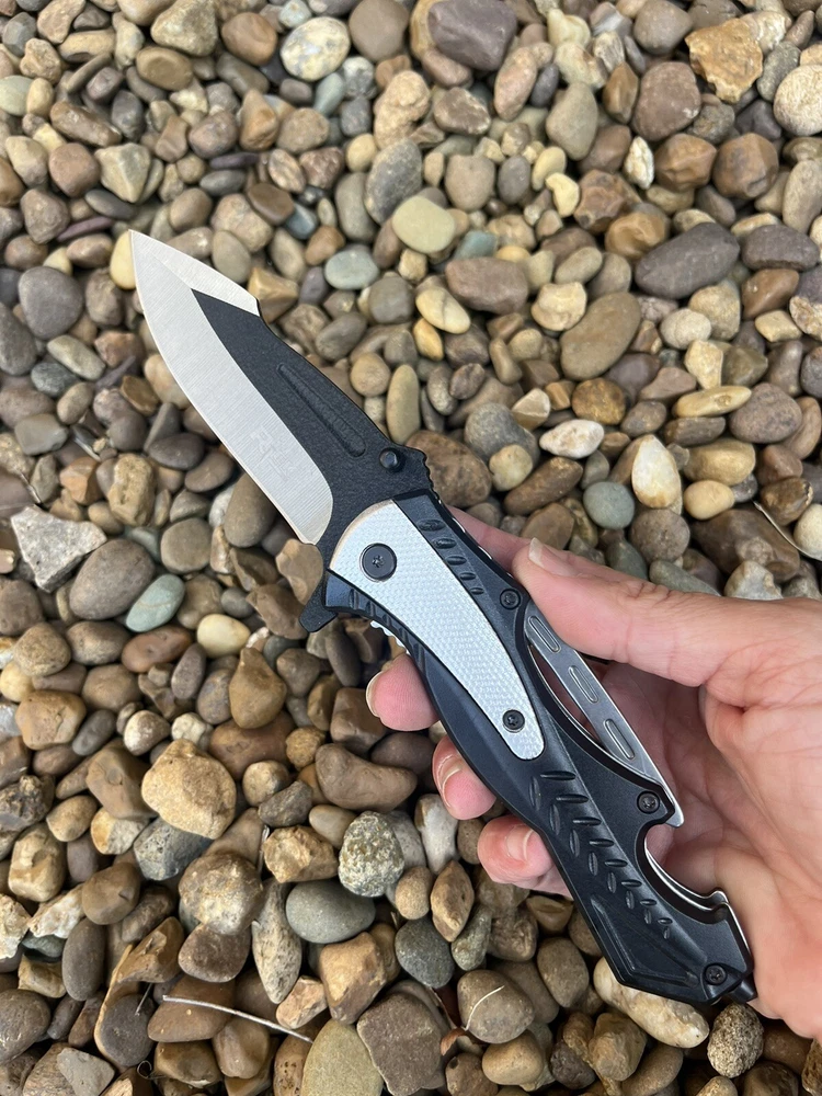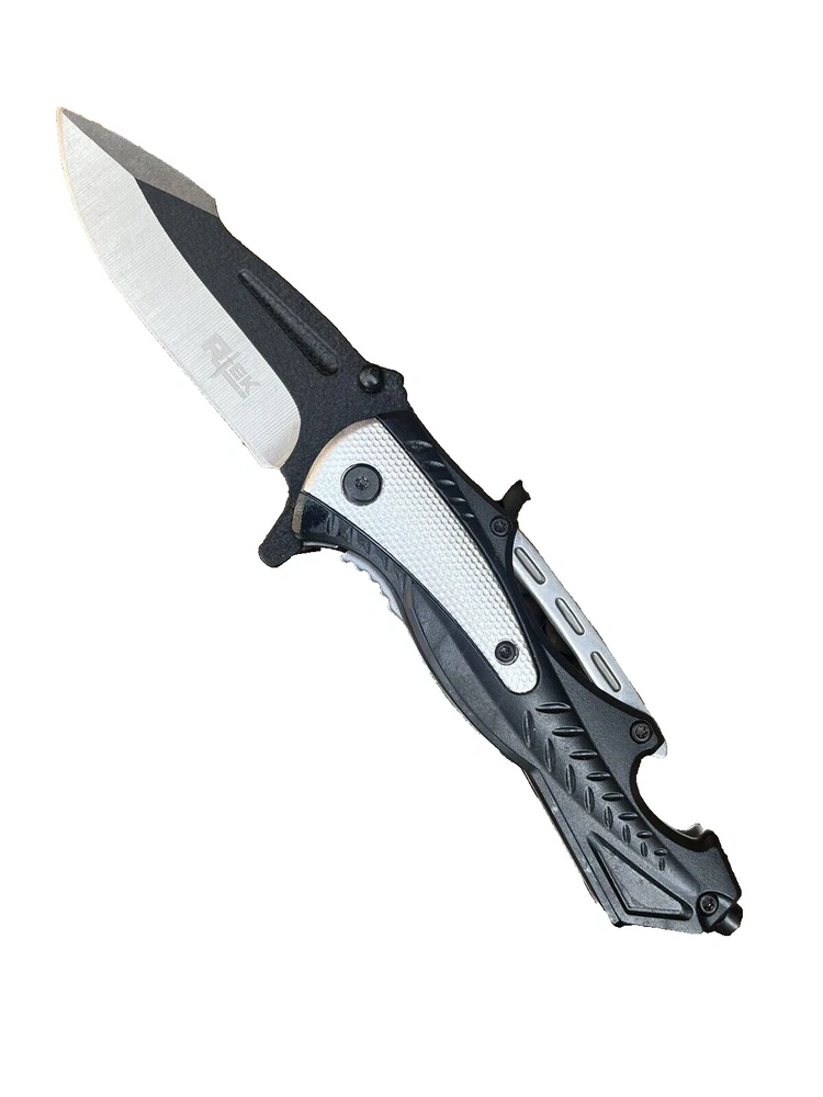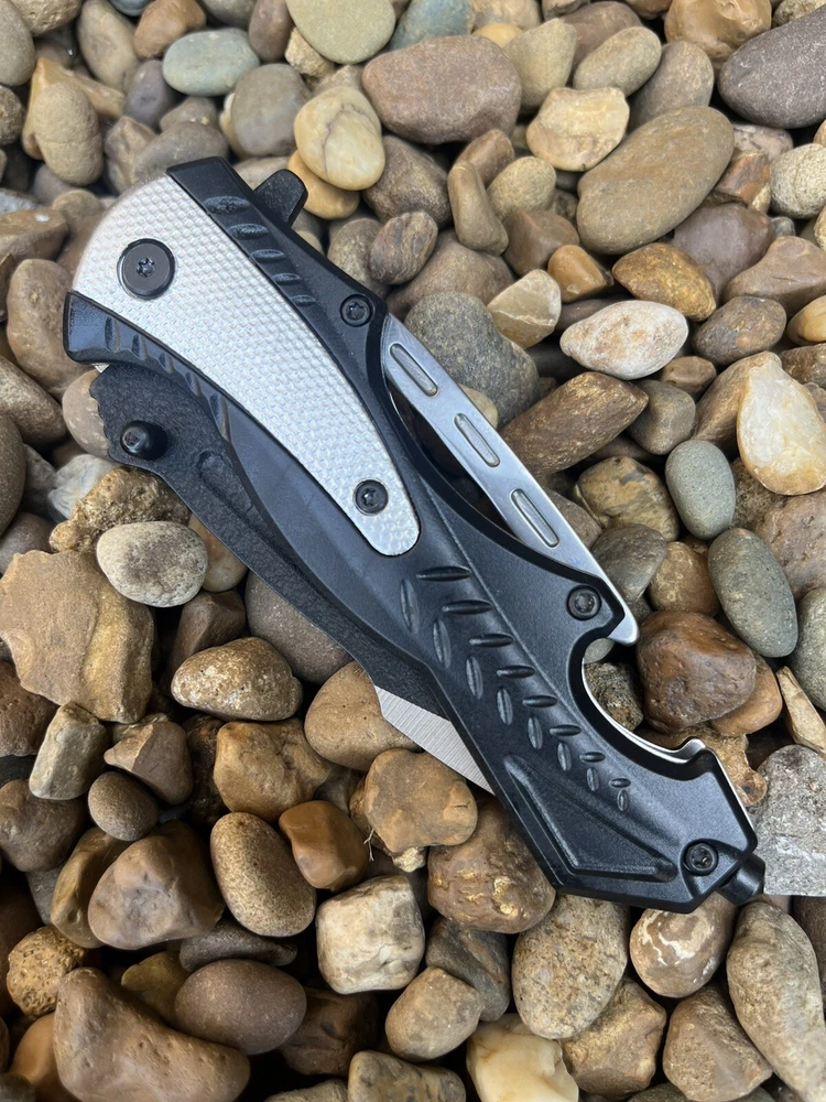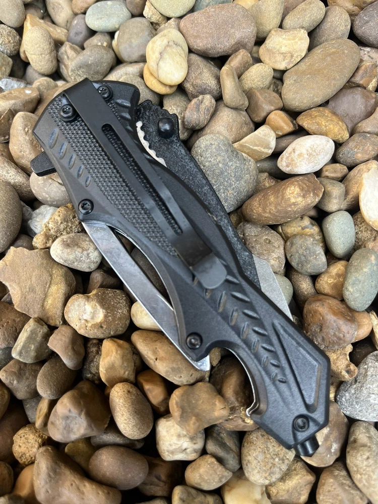 Tactical Black Folding Pocket Knife | 8.25" Drop Point Blade | Bottle Opener | Window Breaker | 30-Day Guarantee This tactical black folding pocket knife is your ultimate everyday carry (EDC) companion. Built for durability and performance, it features a sleek black finish and a sharp 3.5-inch drop point blade, perfect for various tasks. The integrated bottle opener and window breaker make it an essential tool for outdoor adventures, emergencies, or everyday convenience. Key Features: Tactical Black Finish: Sleek and durable design. 8.25" Overall Length: Compact and portable. 3.5" Drop Point Blade: Versatile cutting edge. Bottle Opener: Enjoy your favorite beverages on the go. Window Breaker: Essential safety tool for emergencies. Folding Design: Safe and convenient carry. 30-Day Money Back Guarantee: Purchase with confidence. Whether you're camping, hiking, or simply need a reliable tool for daily use, this tactical pocket knife delivers. Its compact size and lightweight construction make it easy to carry, while its robust build ensures long-lasting performance. Plus, with our 30-day money-back guarantee, you can purchase with confidence. Don't miss out on this essential tool for your outdoor gear or everyday essentials.