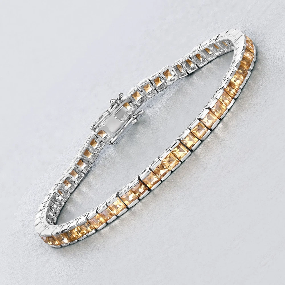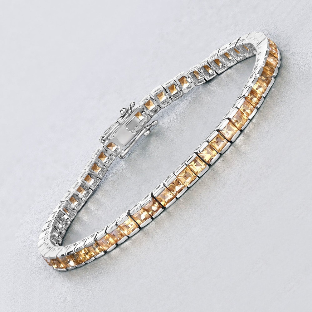 Citrine:Square/3.00mm 55/8.25 ctw Specifications: Gem wt. (Carat): 8.25 Gross wt. (gms): 13.05 Height: 0.15 Inches Length: 7.00 Inches Metal: .925 Sterling Silver Metal wt. (gms): 11.4 Width: 0.19 Inches