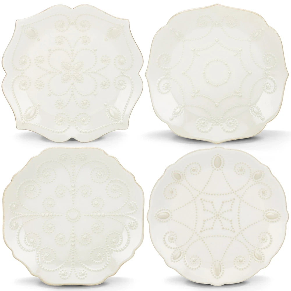 829072 French Perle White 4-Piece Assorted Dessert Plate Set