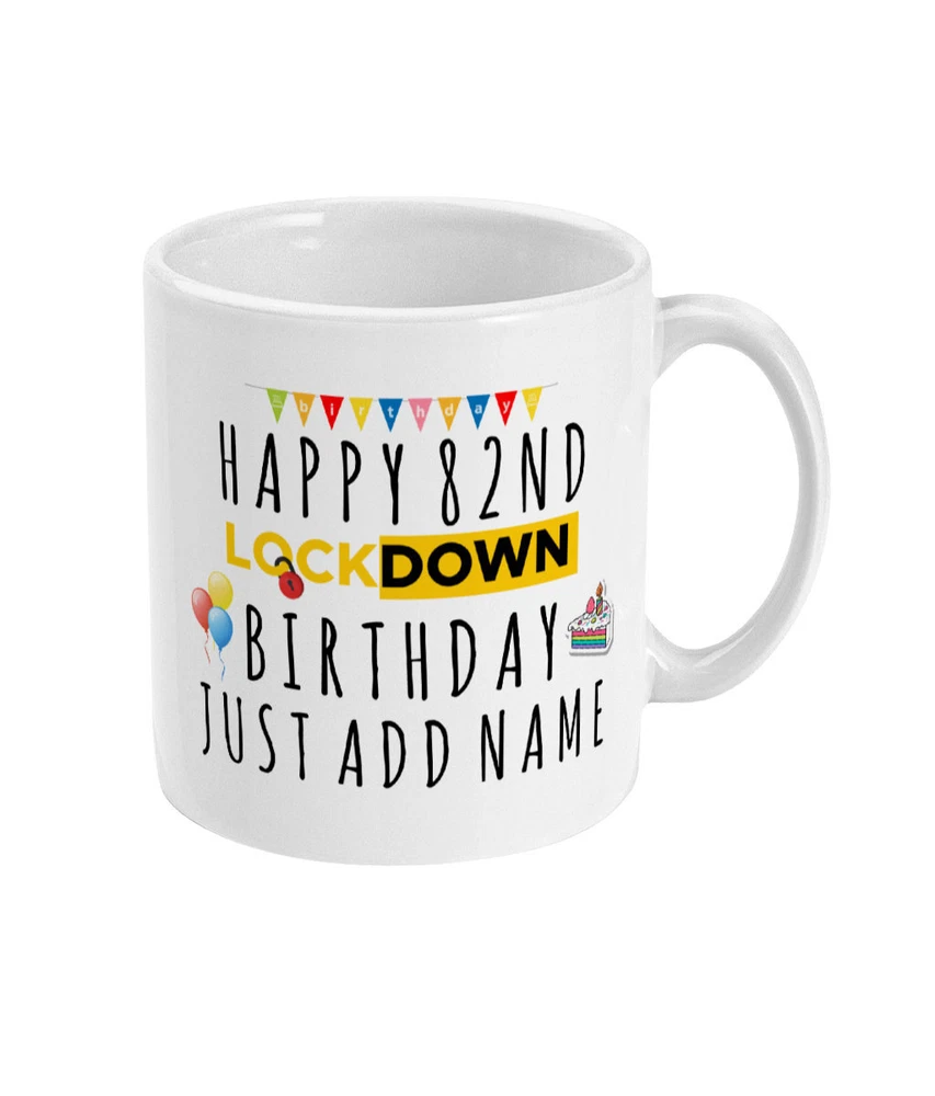 82nd Birthday Gift Personalised 82nd Birthday Mug Lockdown Birthday Eighty Two Product Details.. This high quality 11oz. ceramic white mug has a premium hard coat that provides crisp and vibrant color reproduction sure to last for years. Perfect for all hot & cold beverages. The highest quality printing possible is used. It will never fade no matter how many times you wash it. Material: 100% Ceramic. Print both sides. Dishwasher and Microwave Safe. High Gloss + Premium White Finish. Printed in the U.S.A. Personalized & Custom. We support personalized and custom mug to add custom, when placing an order, you can add notes to the "order note" in shipping address section. Also you can contact us directly via message. Shipping Info. Ready to ship in 1 to 2 business days, All products are made-to-order and proudly printed in the United States. Shipped by USPS and DHL, You will receive your order in 5-7 days. Replace & Refund. All products are defective during shipping broken, chipped will be replaced free of charge. You are not satisfied with the product, we will refund 100% money to you. If any other issues arise, please do not hesitate to message, we would be more than happy to assist you.