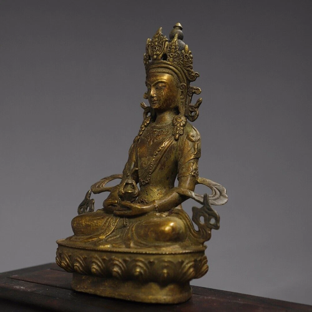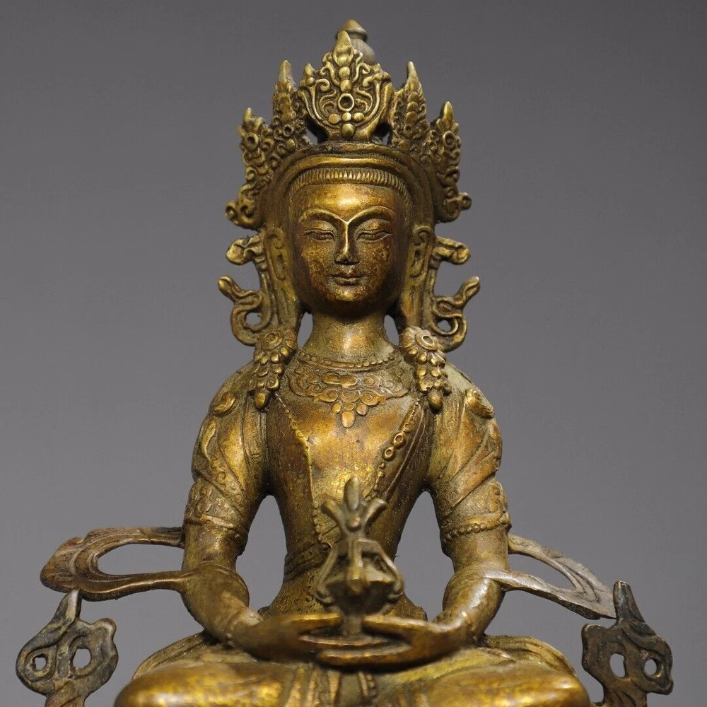 $ 110.898-inch antique Tibetan Buddhism bronze gilt Amitabha Buddha statue from China