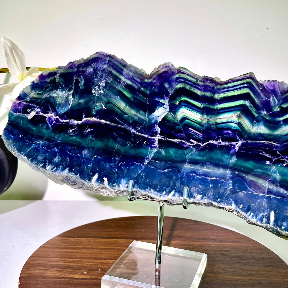 8.34LB Natural and beautiful colored fluorite slice quartz crystal mineral sampl