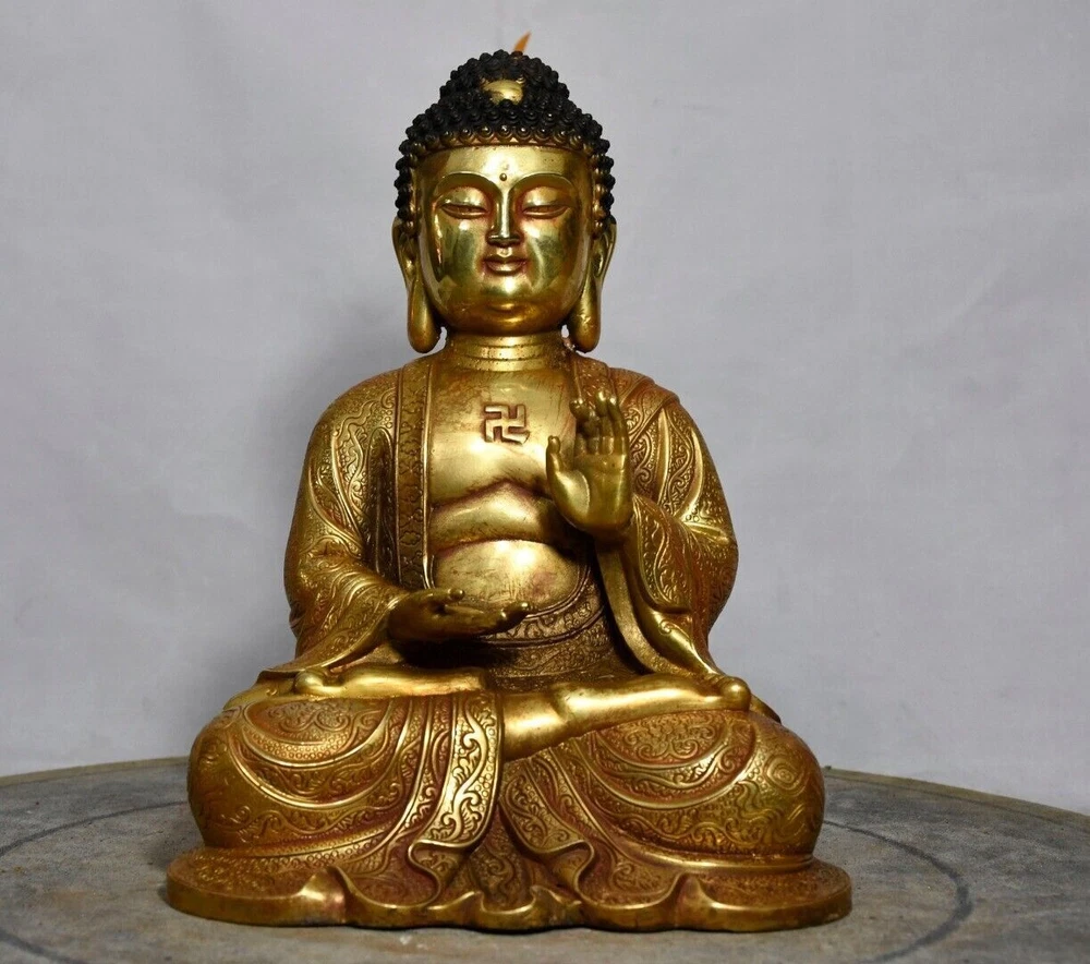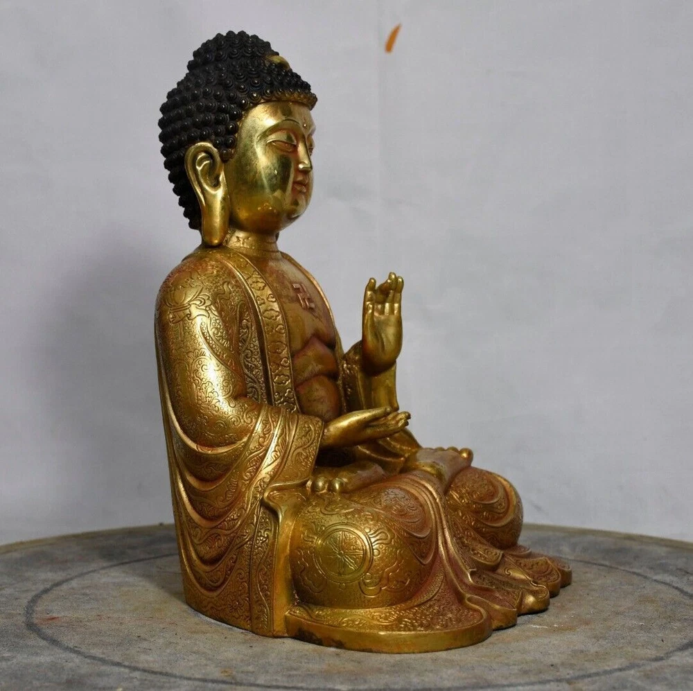 Size: Height: 21cm Wide: 17cm weight: 1.85kg Material: bronze gilt NOTE: Withno wood stand!!!! Condition: Good condition Origin: China