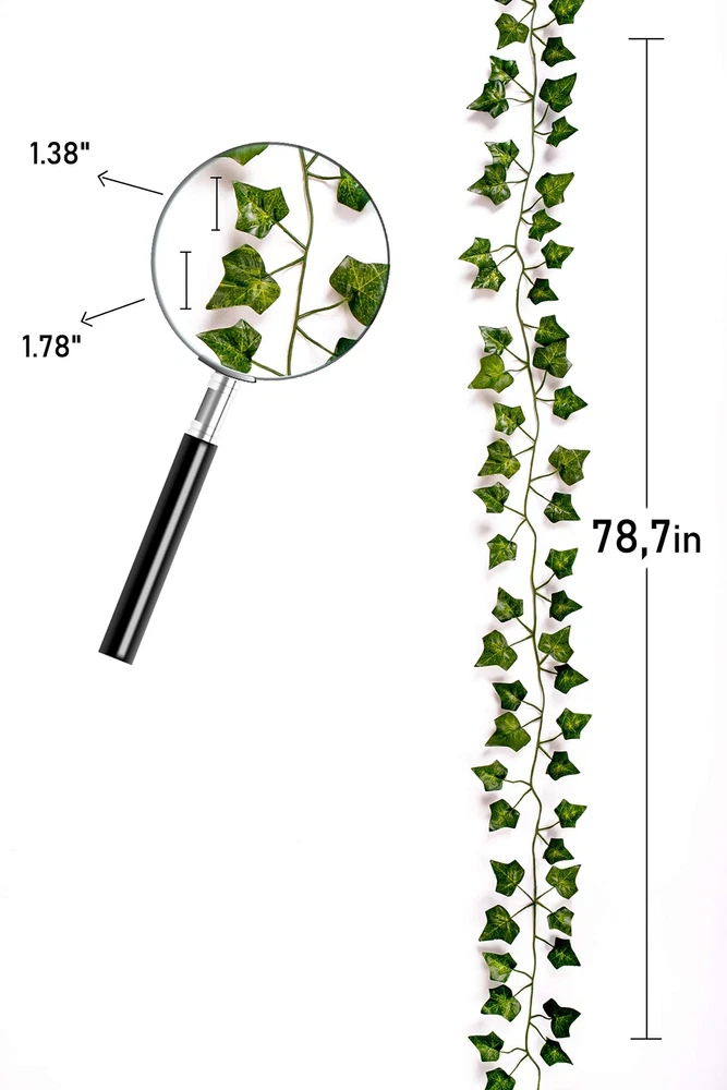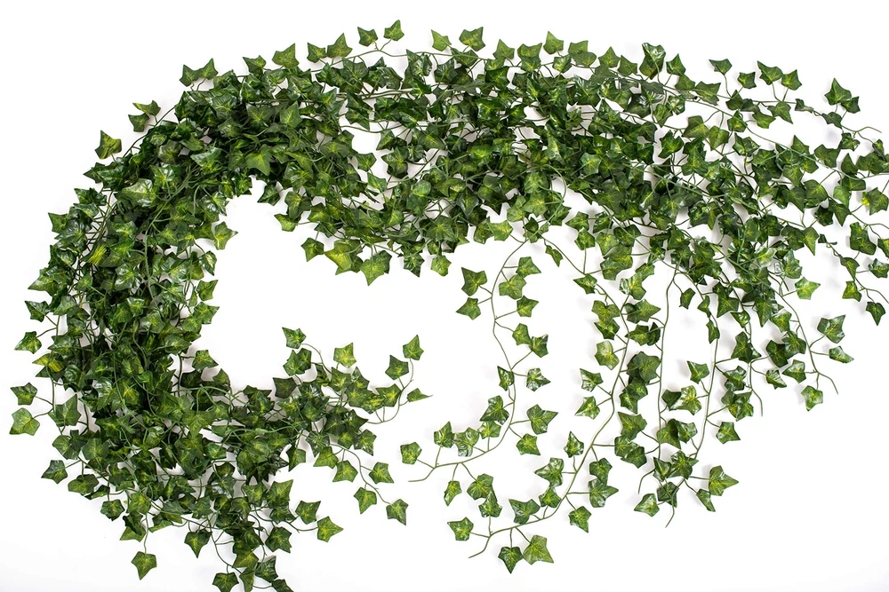 QUALITY artificial ivy garlands for wedding party decor - ivy table runner, backdrop or ballon arch INDOOR OUTDOOR USE. Christmas and Halloween faux decoration plants vines. Poison Ivy cosplay costume Fake leaves greenery decor. Plant wall decor - Green leaves room decor. Wall vines for bedroom Green Color. Looks lifelike, made from Plastic and Silk. Rain Resistant. Leaf vines room decor Will last longer than we will - looking good year after year and the deer will not eat them 😃
