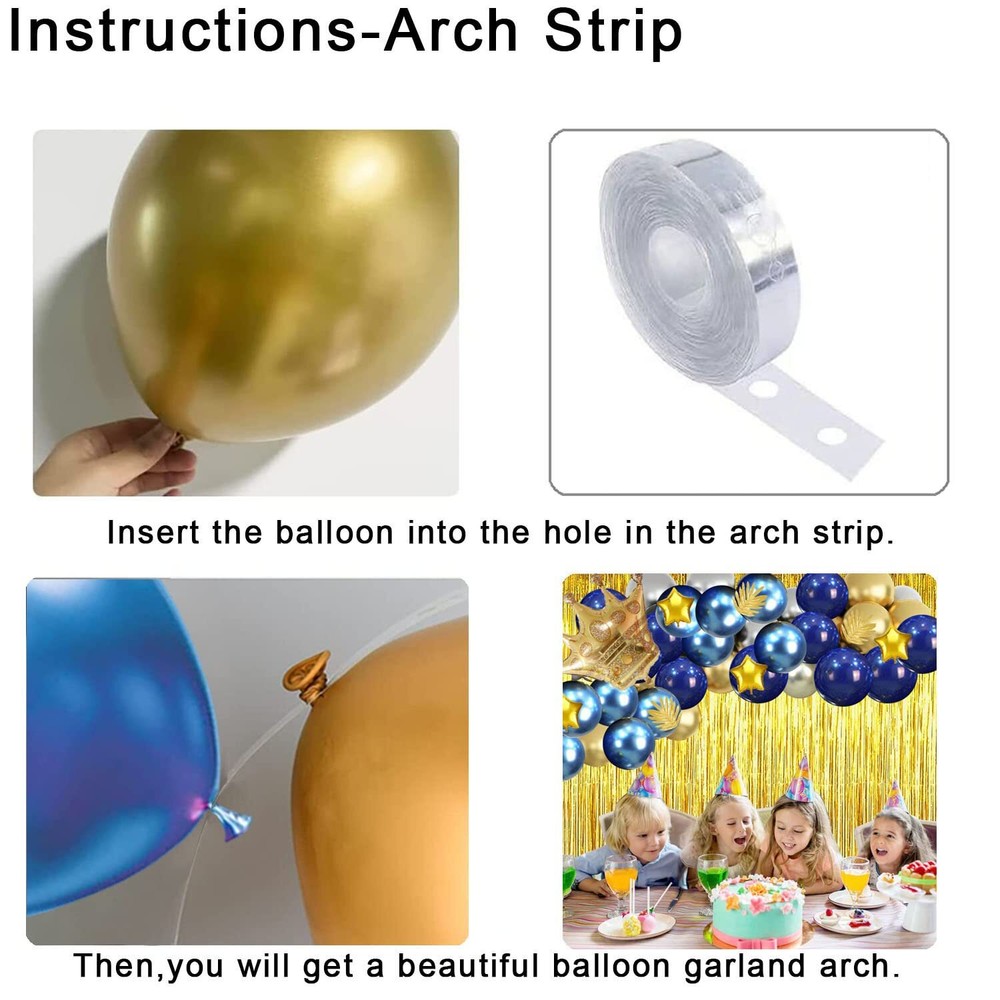 Package content:16pcs 10 inch deep blue balloons, 10 pcs 10 inch metal silver balloons, 12 pcs 10 inch metal gold balloons, 12 pcs 10 inch metal blue balloons, 1 pcs golden rain curtain, 1 pcs golden aluminum film crown balloon, 4 pcs golden leaves, 1 pcs birthday banner, 5 pcs 5inch pentagram aluminum film balloons, 3 pcs glue patches, 1 pcs ribbon, and 1 pcs balloon chain High-quality material:The balloon is made of high-quality thick natural latex, strongly and environmentally friendly. Easy to assemble:There are four colors balloons. Each colors has a sufficient number to make you beautiful balloon garland kits. The product comes with tape and glue to help you make balloon arches more easily. Widely Applicable:These Gold and Metallic silver blue birthday party decoration set suit perfect for girls or boys, men or women birthday party, like 1st,18th, 21st, 30th, 40th, 50th, 60th, 70th, 80th, 90th. Our Service:We are very confident with the quality of our product . If there are any quality issues, we will be at your service until you are satisfied. Purchase with confidence.