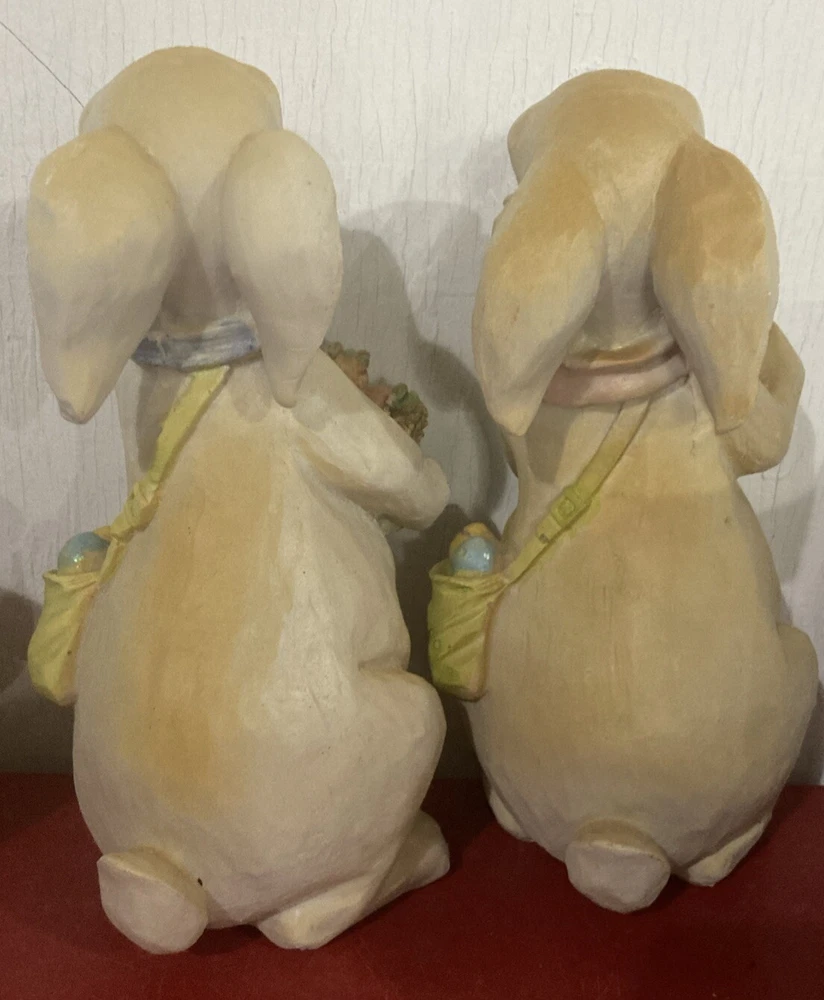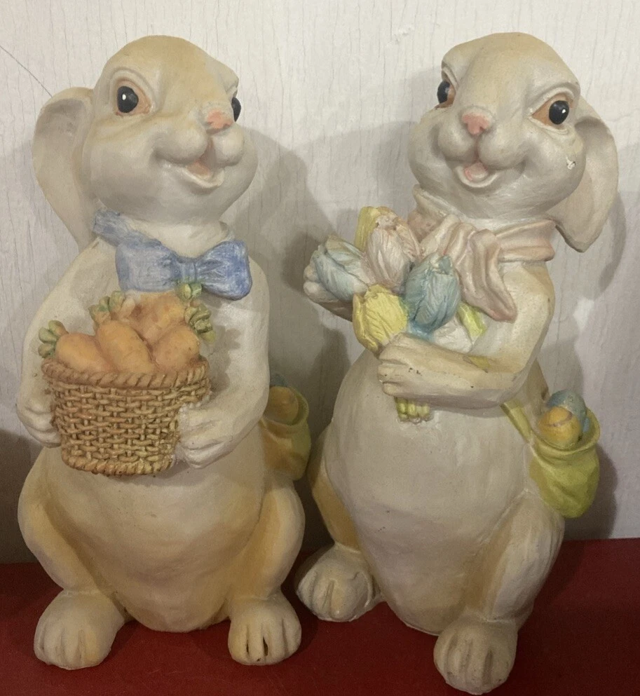 8.5" Easter Spring Chubby Bunny Rabbit Resin Figures Figurine -Boy Girl Pair *5A