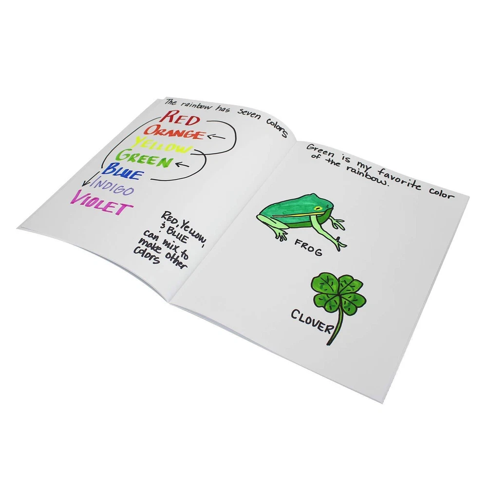 These 8.5" x 11" paperback blank books are perfect for a range of creative activities, from making custom books and drawing to journaling and recording special events. Each portrait-style book features 28 blank pages of sturdy 80 lb paper. Ideal for both classroom and home use, these books offer ample space for various creative projects. Pack of 24. VERSATILE USE – Ideal for creating custom books, drawing, journaling, and documenting special events. GENEROUS PAGE COUNT – Each book features 28 blank pages, offering ample space for various uses. DURABLE PAPER – Made with 80 lb paper, ensuring sturdiness and quality for all your creative needs. PORTRAIT FORMAT – Features a vertical orientation, perfect for detailed drawings, writing, and journaling. SET OF 24 – Includes a convenient pack of 24 blank books for multiple projects or group activities.