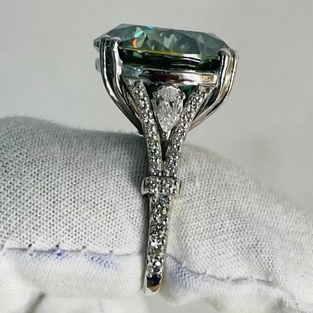 7.80Ct Certified Emerald Cut Blue Diamond Solitaire Ring 925 Silver Ring