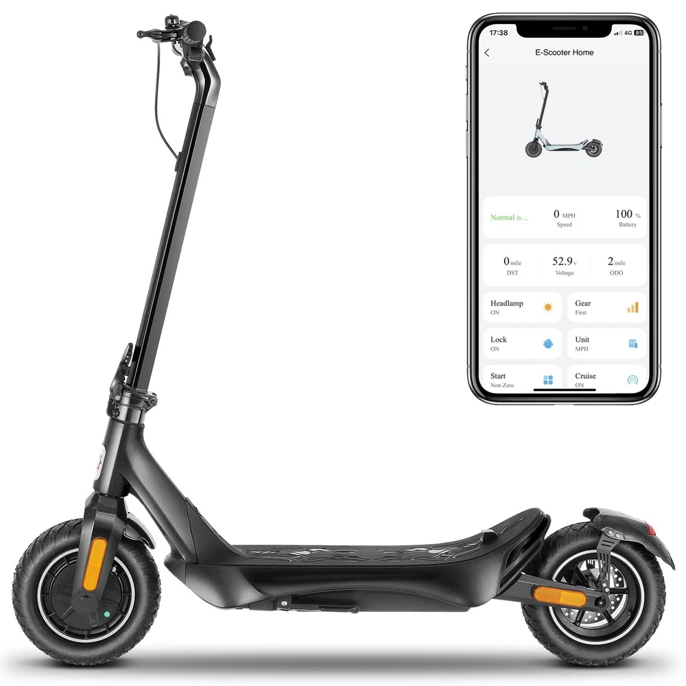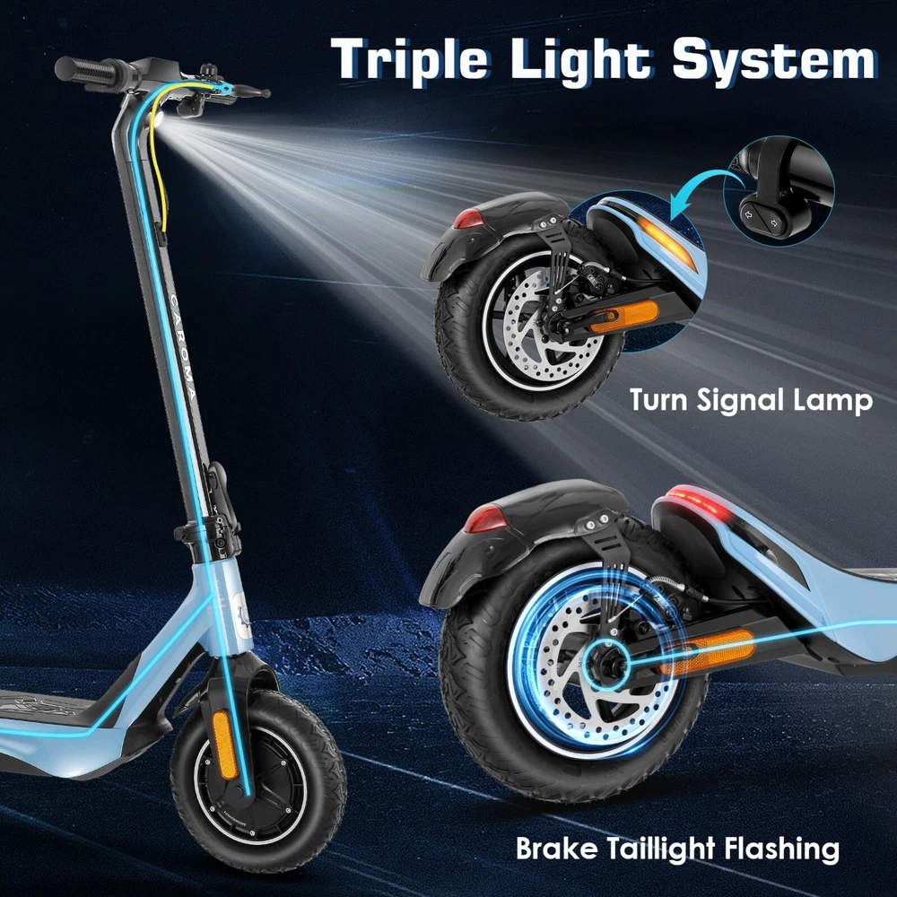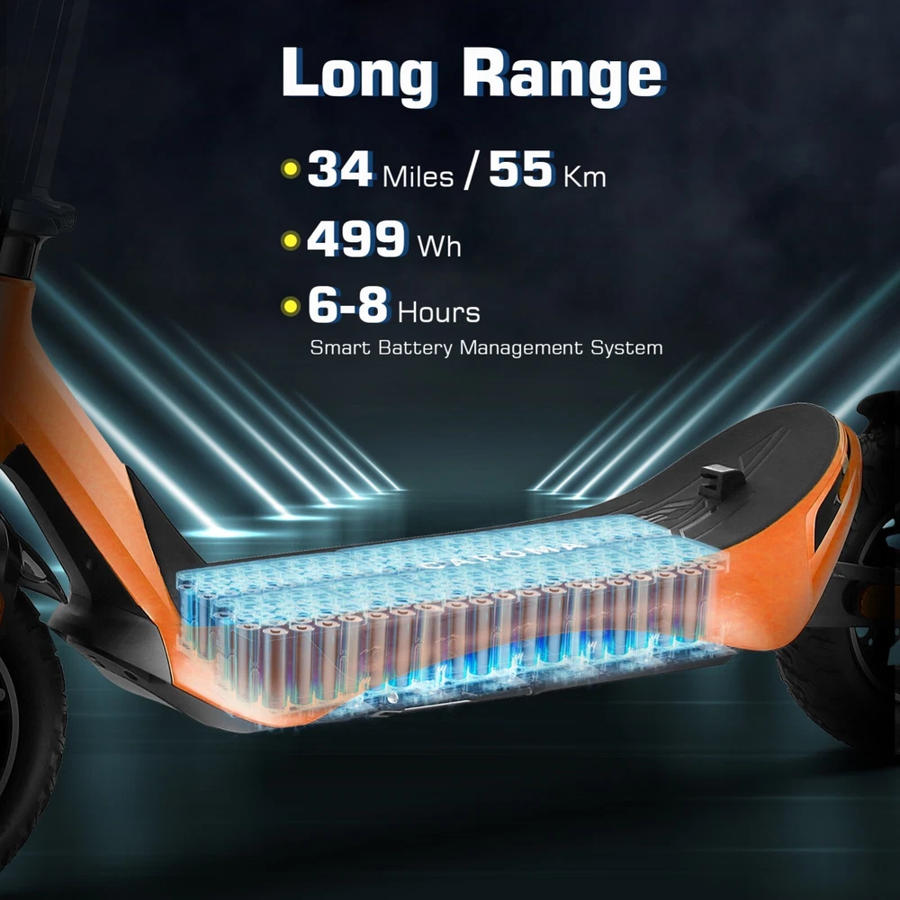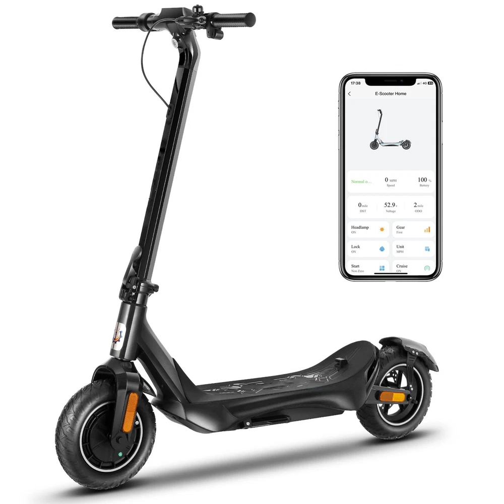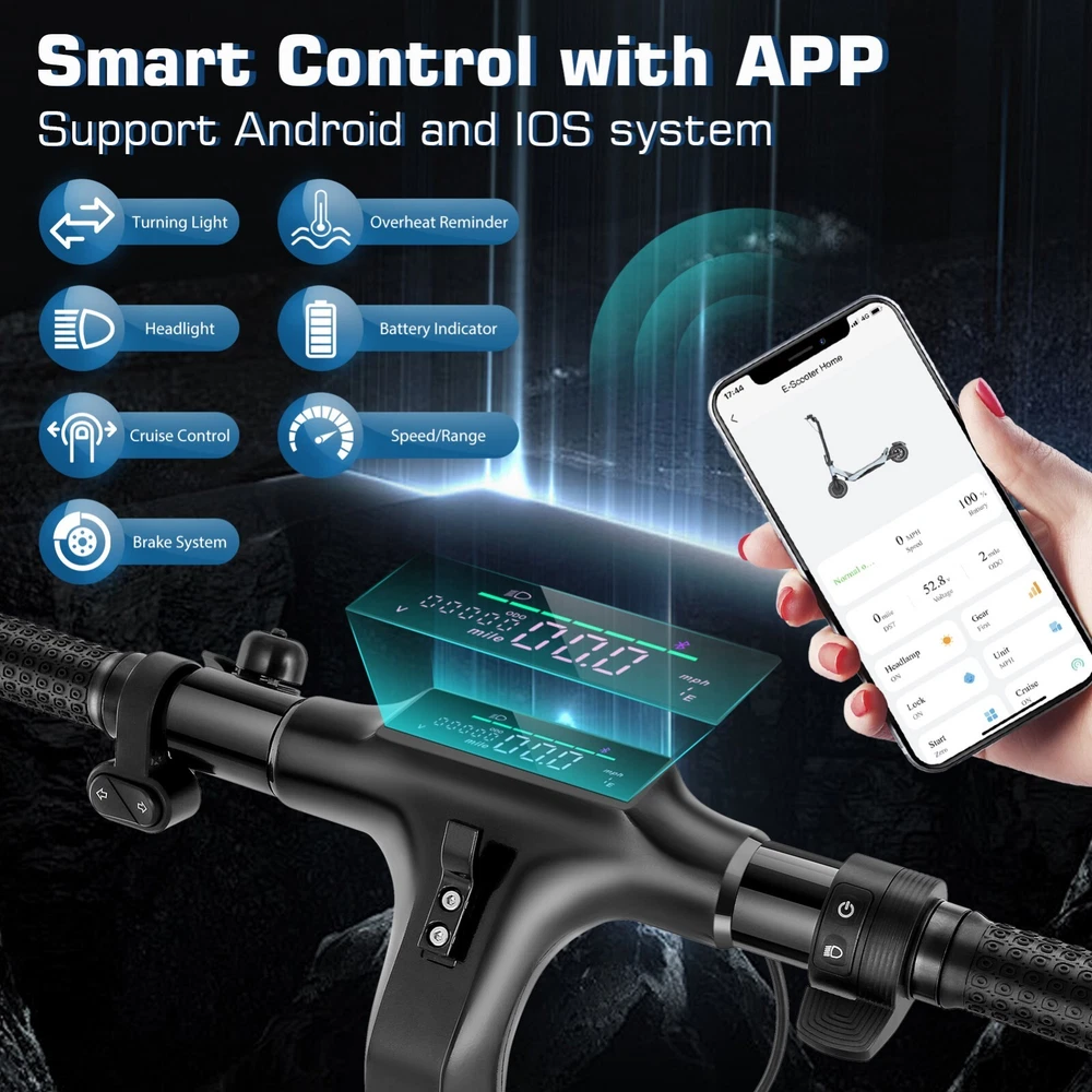 Product Description About this item Exceptional Power and Speed: The CAROMA electric scooter for adults boasts a rated 500W motor(800W peak power), allowing riders to reach speeds of up to 25mph. It's also capable of tackling 30% inclines, ensuring a smooth ride on various terrains Extended Range: With an upgraded large-capacity 48V 500Wh battery, this adult electric scooter offers an impressive maximum range of 30 miles. Whether you're commuting or exploring, this scooter keeps you on the move longer Smart APP Control : This fast electric scooter adults comes with a smart display screen and a smartphone app for easy monitoring and control. It also features intelligent Bluetooth control for a seamless, connected experience.You can also switch to zero-start mode via the app or by quickly pressing the headlight button three times Safety and Comfort: Equipped with bright front headlights, automatic tail lights, and safety turn signals, this e scooter for adults ensures safe rides even in low-light conditions. Its electronic handbrake and disc brake system provide reliable stopping power, while the 10-inch self-healing inflatable tires offer a comfortable ride Foldable and Portable: The folding electric scooter adults 300lbs is designed with convenience in mind. It's foldable for easy storage and transport, making it an ideal choice for commuters. Its maximum load capacity of 300lbs also ensures it caters to a wide range of users Safety: The product is UL 2272 certified