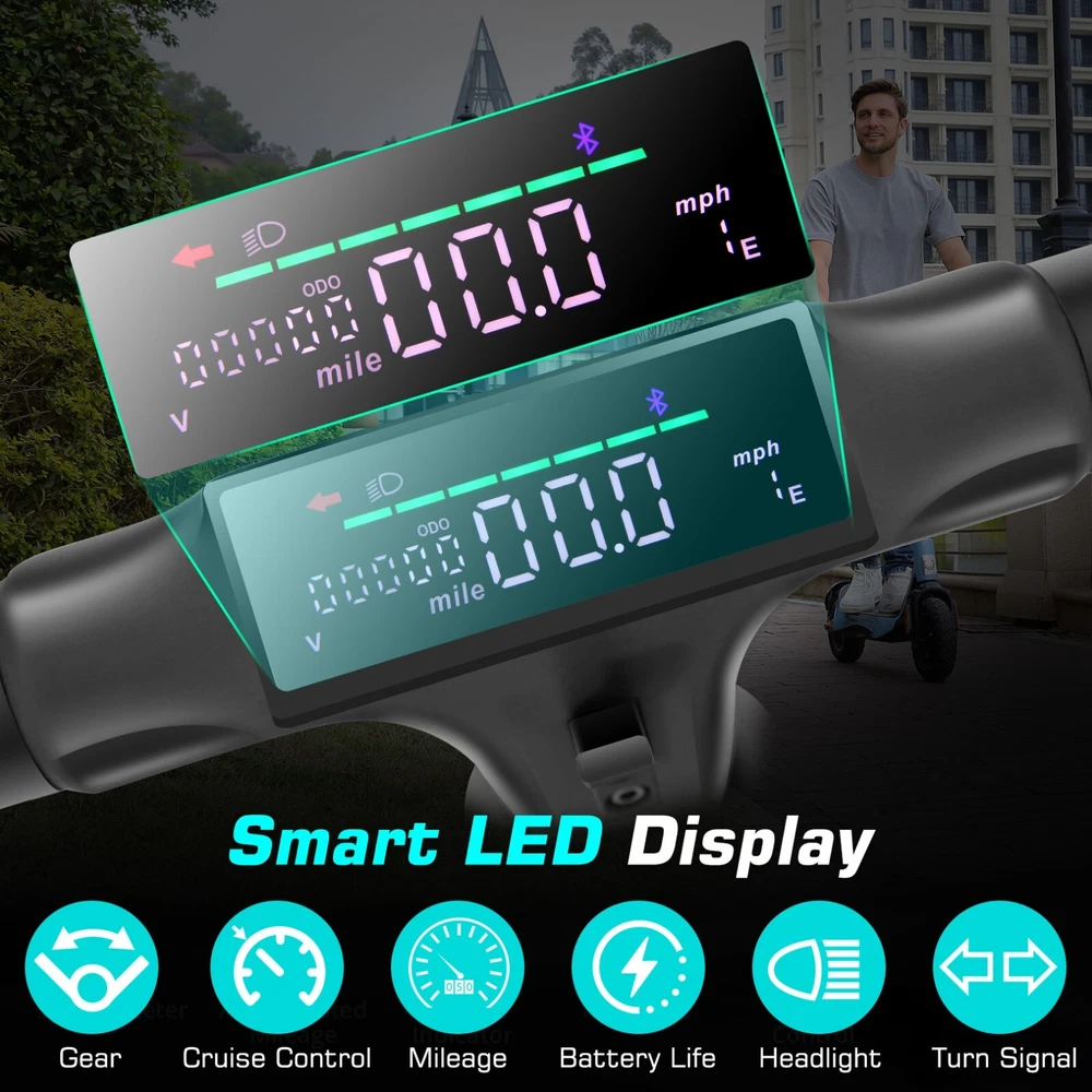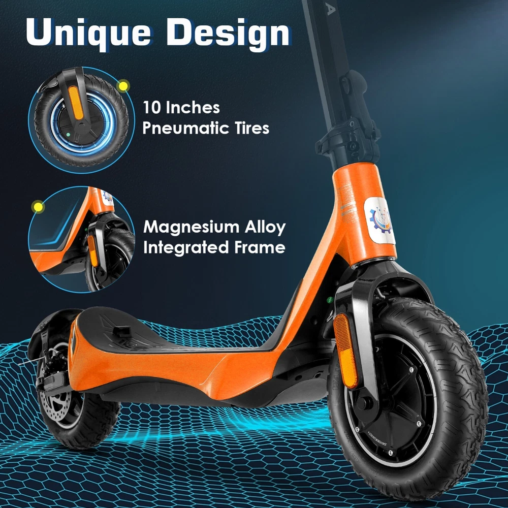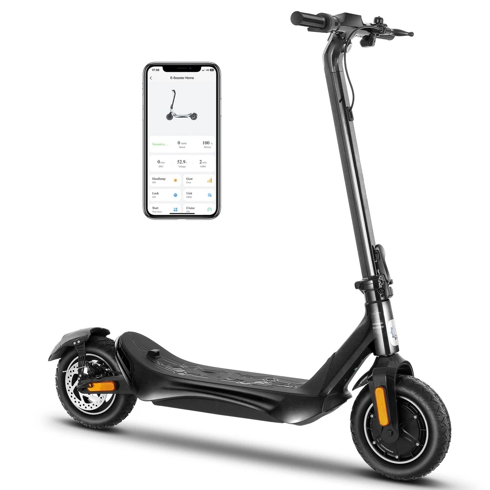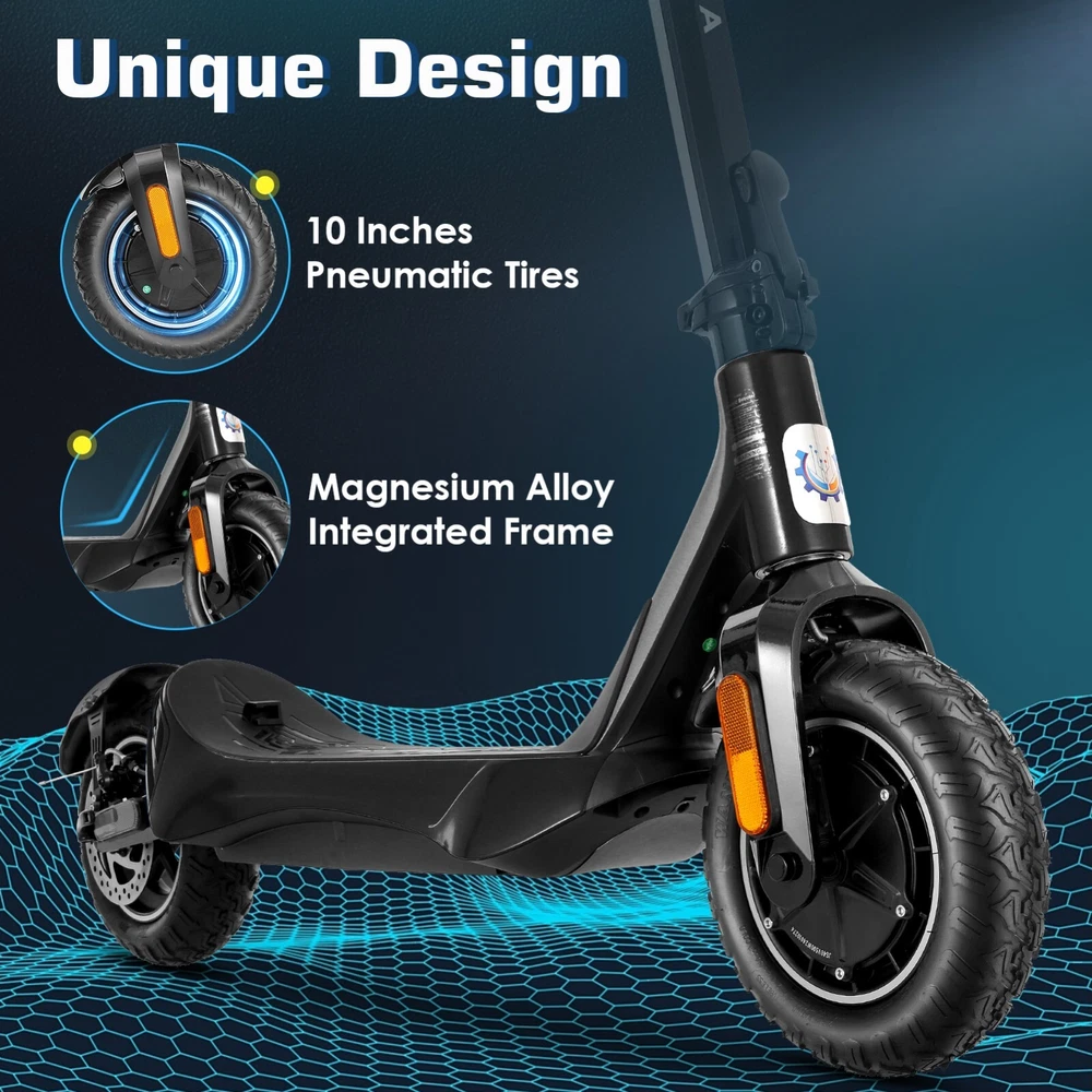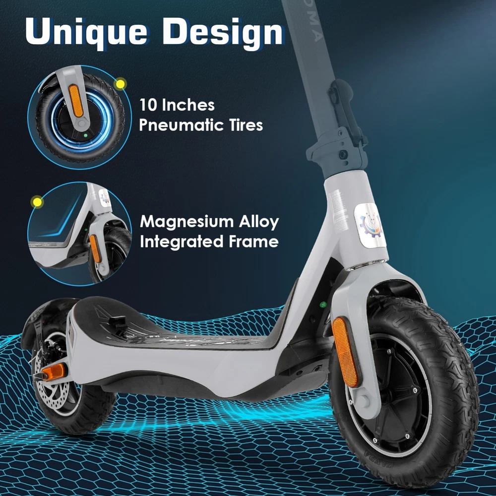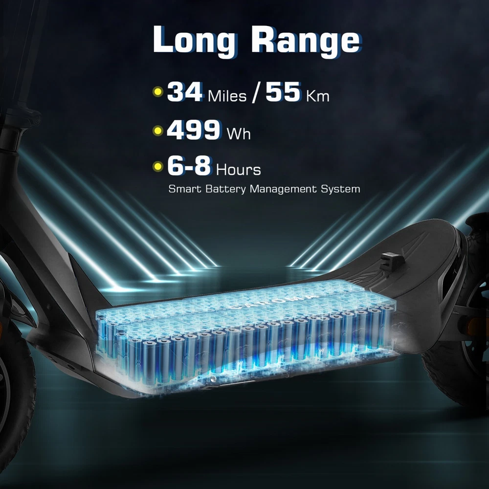 Product Description About this item Exceptional Power and Speed: The CAROMA electric scooter for adults boasts a rated 500W motor(800W peak power), allowing riders to reach speeds of up to 25mph. It's also capable of tackling 30% inclines, ensuring a smooth ride on various terrains Extended Range: With an upgraded large-capacity 48V 500Wh battery, this adult electric scooter offers an impressive maximum range of 30 miles. Whether you're commuting or exploring, this scooter keeps you on the move longer Smart APP Control : This fast electric scooter adults comes with a smart display screen and a smartphone app for easy monitoring and control. It also features intelligent Bluetooth control for a seamless, connected experience.You can also switch to zero-start mode via the app or by quickly pressing the headlight button three times Safety and Comfort: Equipped with bright front headlights, automatic tail lights, and safety turn signals, this e scooter for adults ensures safe rides even in low-light conditions. Its electronic handbrake and disc brake system provide reliable stopping power, while the 10-inch self-healing inflatable tires offer a comfortable ride Foldable and Portable: The folding electric scooter adults 300lbs is designed with convenience in mind. It's foldable for easy storage and transport, making it an ideal choice for commuters. Its maximum load capacity of 300lbs also ensures it caters to a wide range of users Safety: The product is UL 2272 certified