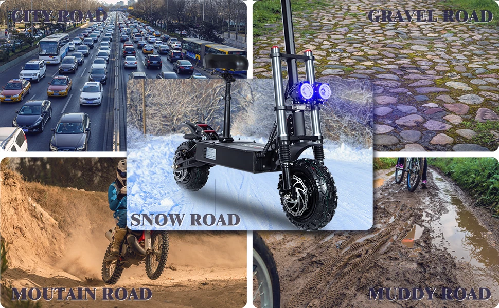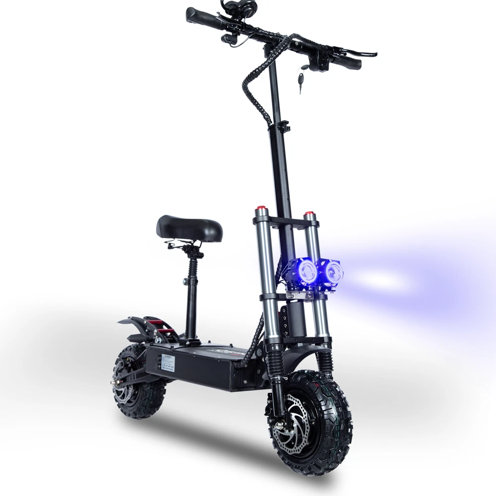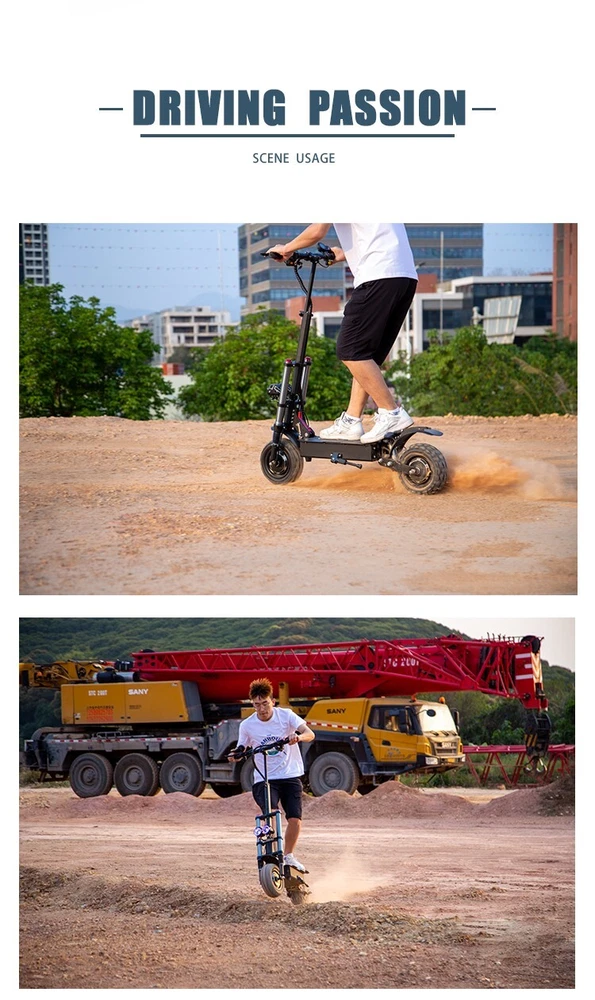 This electric scooter is a beast! The dual 6000W motors deliver insane 85km/h speed, and the 11" off-road tires handle rough terrain smoothly. With a 100km range, hydraulic suspension, and double disc brakes, it's powerful yet safe. The bright lights and IPX5 rating make it great for any condition. Perfect for thrill-seekers who want speed and durability!