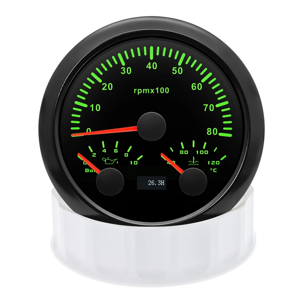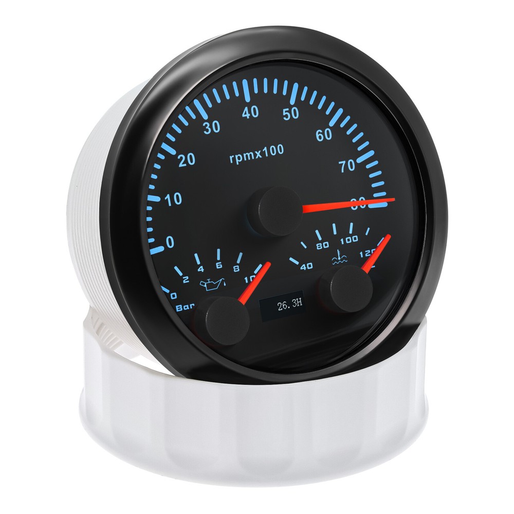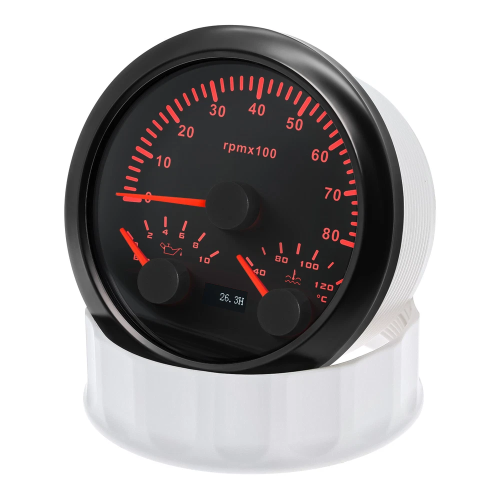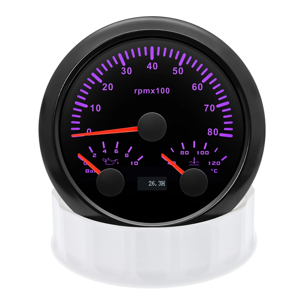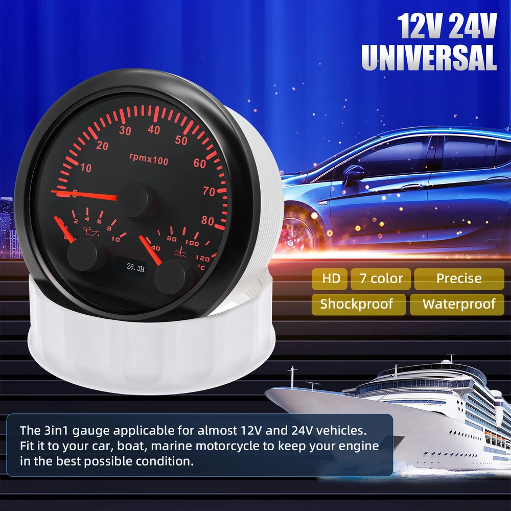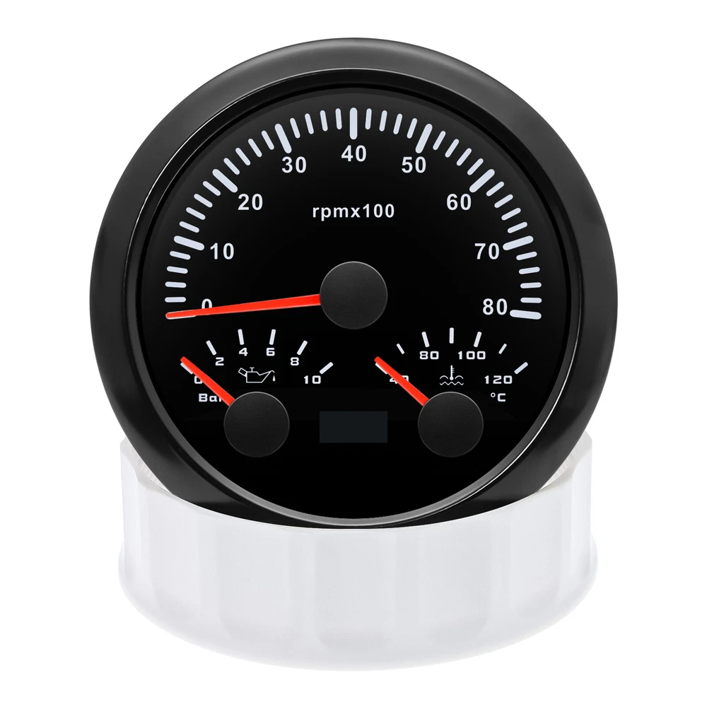 85MM 3 IN 1 Gauge Tachometer 0-8000RPM With Water Temp Oil Pressure for Boat Car