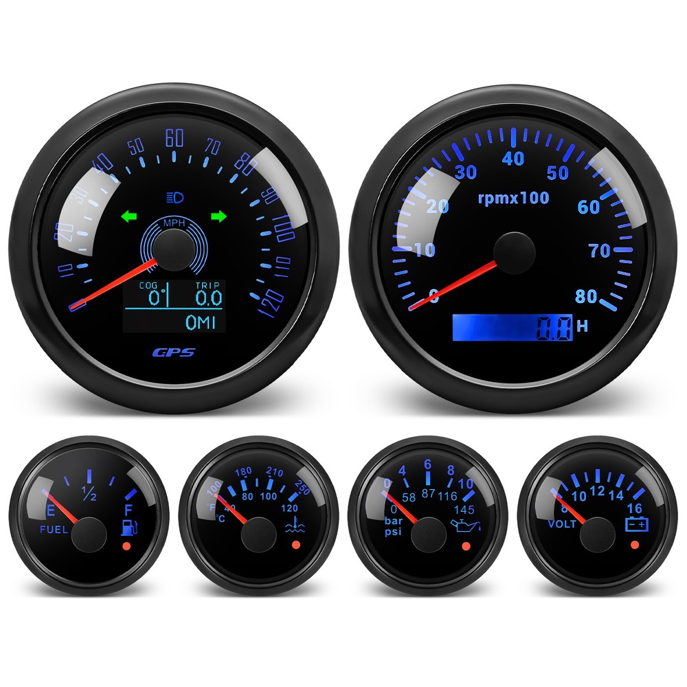 6 Gauge Set 85mm GPS Speedometer 120MPH Tachometer 8000RPM with Senders for Boat