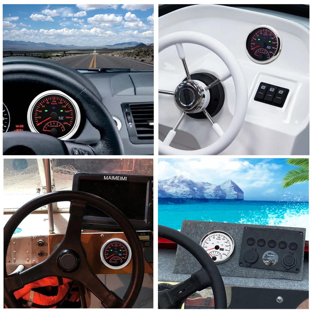 85MM GPS Speedometer 0-200 Km/H with Tachometer Gauge 8000RPM for Car Boat Truck 85MM GPS Speedometer 0-200Km/H with Tachometer Gauge 0-8000RPM for Car Boat Motorcycle Warmly tips: If any problem after buying, such as some when you install or the parcel received or un-received, please do not open a case and do not hesitate to contact us. We would do our best to give you the best solution. Thank you so much Features: - Suitable for all vehicles and off-road vehicles - The signal comes directly from the satellite signal receiver(GPS Antenna), don’t need other speed sensor. - The gauge has the advantages of high precision, quick location confirmation and short start up time. - IP67 waterproof and dustproof grade - Reverse polarity protection and anti-fogging performance - No Stationery Drift - Stepper motors used for full range of stepping gauges, great feature with its less power consumption, longer life, higher precision, etc. Technical Data: * Fixing dimension: 85mm(3-3/8") * Indicating Range: 0-200km/h,and 0-8000rpm * Working Voltage: 12V/24V * Total Mileage Adjustable, Mileage Range: 0-99999.9 km * GPS Blind Area Odometer Compensation * OverSpeed Buzzer Alarm (Value Adjustable) * Indication light: LEFT, HIGH BEAM, RIGHT * Backlight: Red * Working temperatures: - 40 to 85°C * Operation mode: LCD display, stepper motor Connection: 1. Black: Ground(-) 2. Red: 9-32VDC(+) 3. Blue: RPM Signal 4. Yellow: Backlight(+) 5. White: High Beam(+) 6. Brown: Buzzer alarm(+) 7. Green: Buzzer alarm(-) 8. Yellow: Left Turn 9. Gray: Right Turn 10. White: Ex. Button(no need connect)==(If need to connect, please connect negative) Package Included(as picture): 1x GPS speedometer with tachometer 1x GPS Antenna 1x Multi-plug socket 1x Installation Instruction Wholesale and Drop shipping - For wholesale, we will offer the discount or free express shipping which only takes 3-7 days to arrive. - For drop shipping, We could send the goods to your customers directly and won't leave information about us if youd like to.