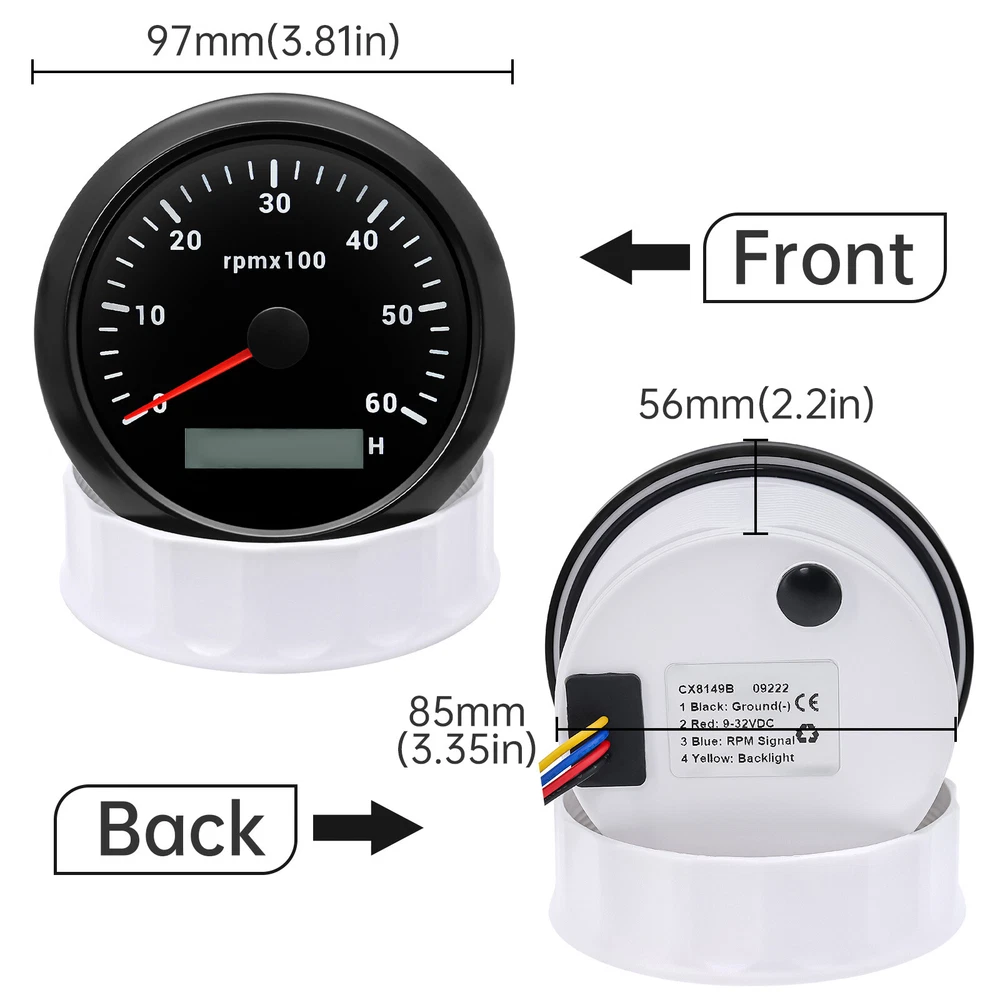 85MM GPS Speedometer 0-60MPH w/Tachometer & 52mm Fuel Water Oil Pressure Voltage 6 Gauge Set 85mm GPS Speedometer 0-60MPH Tachometer & 52mm Fuel Water Temp Oil Press Volt Gauge For Car Boat Feature: High-brightness LED backlight. 316 stainless steel for long-term use even in acid-base, humid environment. IP67 waterproof and dust-proof grade. With curved glass( with anti-fog function). Suitable for all kinds of vehicle modification. Using stepper motor drive pointer, accurate display of the engine speed, and with the LCD display clear display mileage. Gauges have many kinds backlight color (red,yellow,orange,green,blue,purple,white),customers can adjust any color that you like. GPS Speedometer Gauge Install Diameter: Φ85mm or 3-3/8" Signal: GPS Working Voltage: 9~32V DC Size: 12x8x12cm / 4.72x3.1x4.75 inch Indication Range: 0-60MPH Backlight:7 Colors Backlight Tachometer Install Diameter: Φ85mm or 3-3/8" Engine hours: 0.0-99999.9H Backlight :7 Color backlight Indicating Range: 0~6000 RPM Signal: Pulse For Tachometer, you can substitute for different unit, please contact us before / after purchase or note on the order. Tachometer: 0-3000rpm/0-4000RPM/6000RPM/7000RPM/8000RPM Fuel Level Gauge Sizes: 52 mm (2-1/16") Measuring Range: Empty - Full Resistance: 240 (E) - 33 (F) ohms Backlight: 7 Colors Water Temperature Gauge Install diameter: Φ52mm Indication range: 0~120℃/30-250℉ Input signal: 287.4~22.4 ohms Storage temperature: -40~+85℃ Backlight: 7 Colors Oil Pressure Gauge Install diameter:Φ52mm or 2-1/16" Indication range:0~10bar / 0-150 PSI Input signal: 10-184 ohms Operating temperature:-30~+75℃ Storage temperature:-40~+85℃ Backlight: 7 Colors Volt Gauge Sizes: 52 mm (2-1/16") Measuring Range: 8 - 16 (V) Backlight: 7 Colors Package Includes: 1X 85MM Digital GPS Speedometer Gauge 1X GPS Antenna 1X 85MM Tachometer 1X 52MM Fuel level gauge 1X 52MM Voltmeter 1X 52MM Water temp gauge 1X 52MM Oil Pressure gauge 6X Installation Instruction