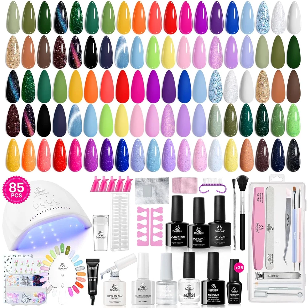 85-Piece Spring Gel Nail Polish Kit with UV Light - 35 Vibrant Colors & Essentials