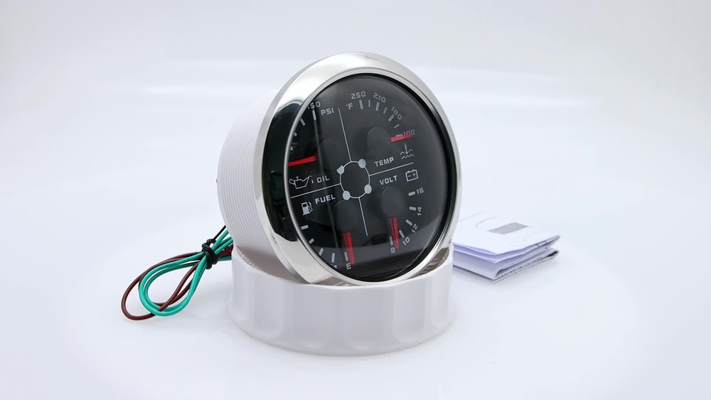 2 Gauge Set 85mm GPS Speedometer 120MPH w/Tacho 0-8000RPM & 85mm 4 in 1 Gauge 2 Gauge Set 85mm GPS Speedometer 0-120MPH w/ 85mm Fuel Level Water Temp Oil Pressure Volt Features: Suitable for all vehicles and off-road vehicles The signal comes directly from the satellite signal receiver(GPS Antenna), don't need other speed sensor. The gauge has the advantages of high precision, quick location confirmation and short start up time. IP67 waterproof and dustproof grade Reverse polarity protection and anti-fogging performance Stepper motors used for full range of stepping gauges, great feature with its less power consumption, longer life, higher precision, etc. Most importantly, the gauge is easy to setup, and can be used in all vehicles, boats and off-road vehicles. Speedometer Specifications: Application: Universal fit for Motorcycle/ Boat/Truck/Bus/Car Electronic Speedometer (stepper motor) No Mechanic Sensor, get speed signal from GPS Speed ≠0 and show accurate speed in tunnel with the help of accelerometer Total Mileage Adjustable GPS Blind Area Odometer Compensation OverSpeed Buzzer Alarm (Value Adjustable) Indication Light (Left, Right and High Beam Installation Diameter: 85mm (3 3/8") Speed Range: 0~120MPH RPM Range : 0~8000RPM Mileage Range: 0-99999.9miles Working Voltage: 12V/24V Working temperatures: - 40 to 85°C Protection rank: IP67 Waterproof Reverse polarity protection and anti-fogging performance 4 IN 1 Gauge Technical Data: Fixing dimension: 85mm Indicating Range: Oil press. meter: 0-150PSI Water temp. meter: 100-250℉ Fuel level meter: 0-190ohms/240-33ohms, empty-full; The signal can be adjusted Voltmeter: 8-16V Working Voltage: 12V Input Signal: 10-184ohms for 0-10Bar oil pressure meter; 0-190ohms for fuel level meter;(Default 0-190ohms, can adjust to 240-33ohms) 8-16V voltage meter; Input Signal 320-22ohms for water temperature meter Red backlight Protection grade is IP67, the whole body is completely waterproof; Excellent antifogging function; 316 Stainless steel bezel with curved glass; Convenient Installation by multi-plug socket connecting way; Accessories: matched with connectors, Installation Instruction Package Included: 1 x 85mm 4 in 1 Multifunctional Gauge 1 x 85mm GPS Speedometer Gauge 1 x GPS Antenna 2 x Cable 2 x Installation Instruction