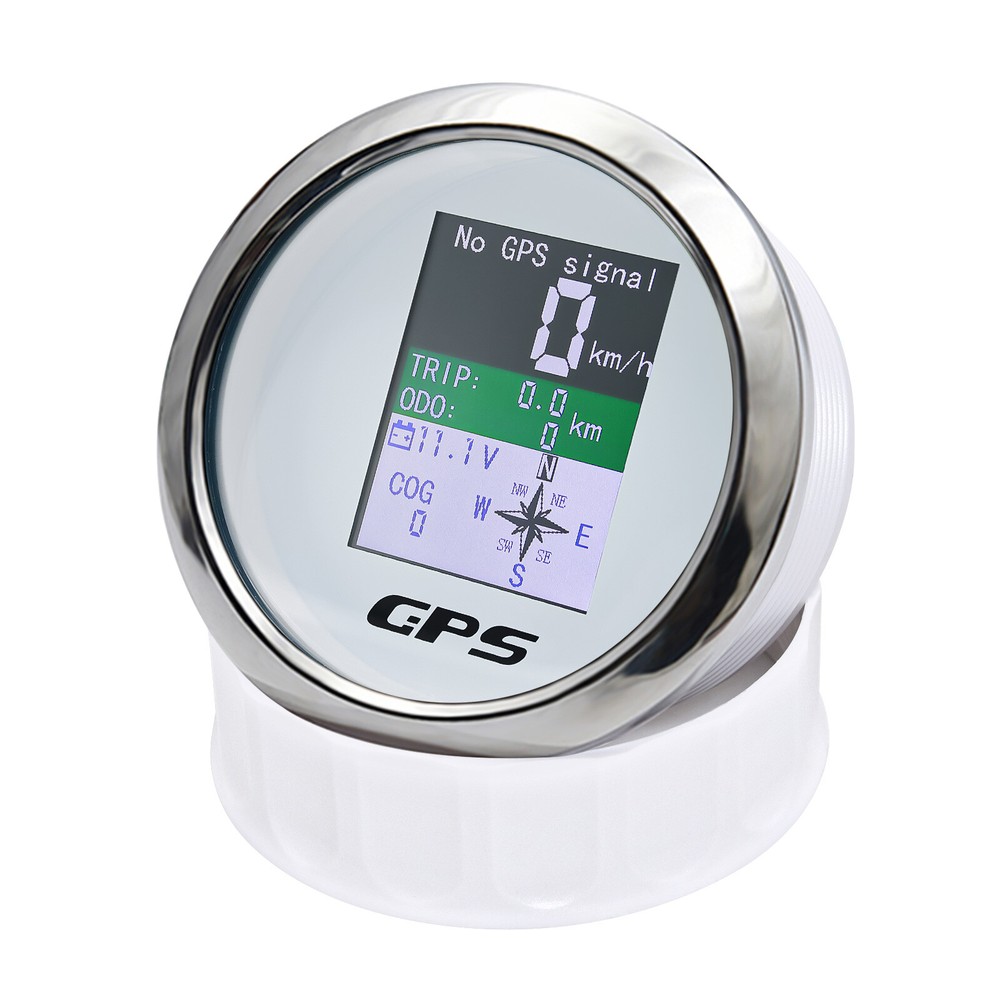 85mm Digital Car Boat GPS Speedometer Odometer Voltmeter Gauge MPH Kmh Knots US 85mm Waterproof Digital GPS Speedometer Odometer Voltmeter for Boat Car Truck US Features: GPS SOG:Speed Over Ground: 0-600km/h ODO: odometer:0-999999km (can be adjusted by the back button.) TRIP: 0-999.9km (Return Zero When off electricity.) COG: Course Over Ground (Orientation Pointer) Battery voltage: 9~32VDC Three unit can be swicthed:knot;mph;km/h Degree of Protection:IP67 Backlight: TFT Screen Input Parameter: GPS signal GPS antenna length 3 meter Dimensions: 85mm diameter (3-3/8") 55mm Depth (2-3/4") Package Included: 1*GPS Speedometer 1*GPS Antenna 1*Multi-plug socket 1*Instruction