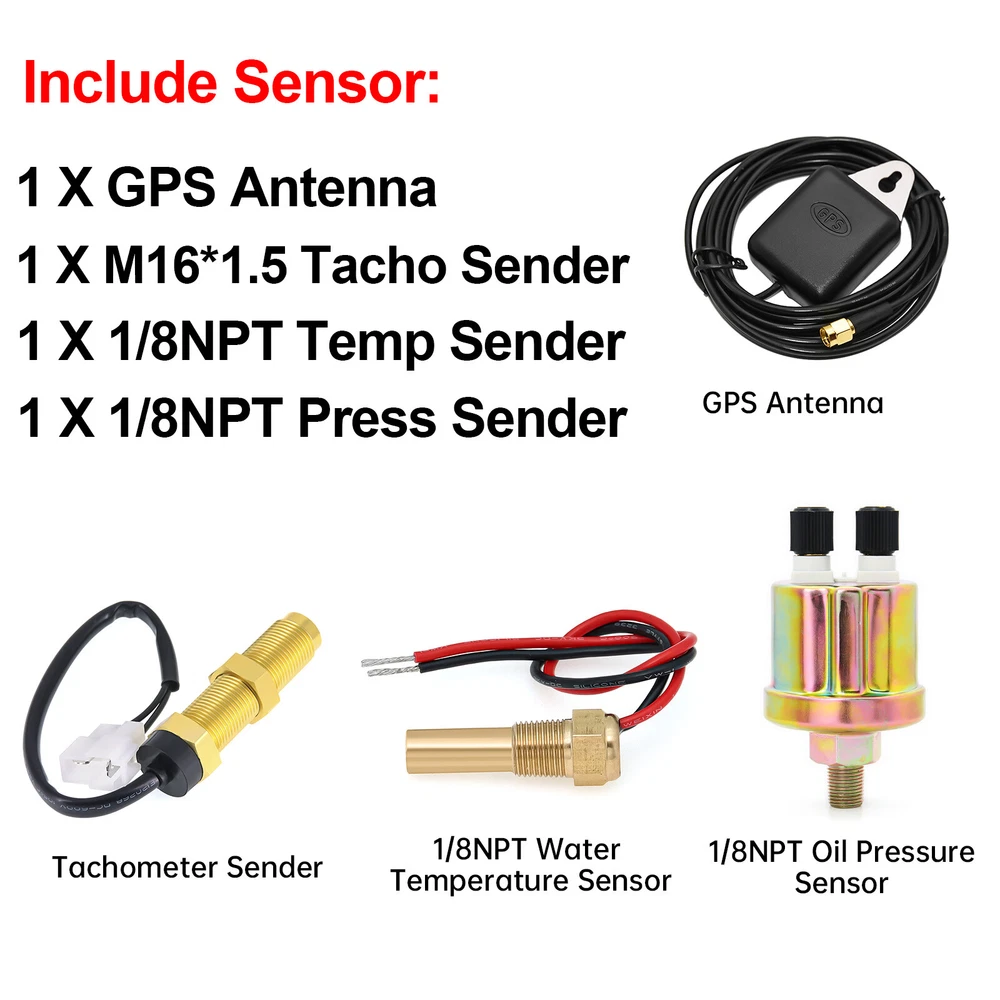 $ 14.7385mm GPS Speedometer 0-120MPH with Fuel Gauge Volt Tacho Oil Water Temp Sensors