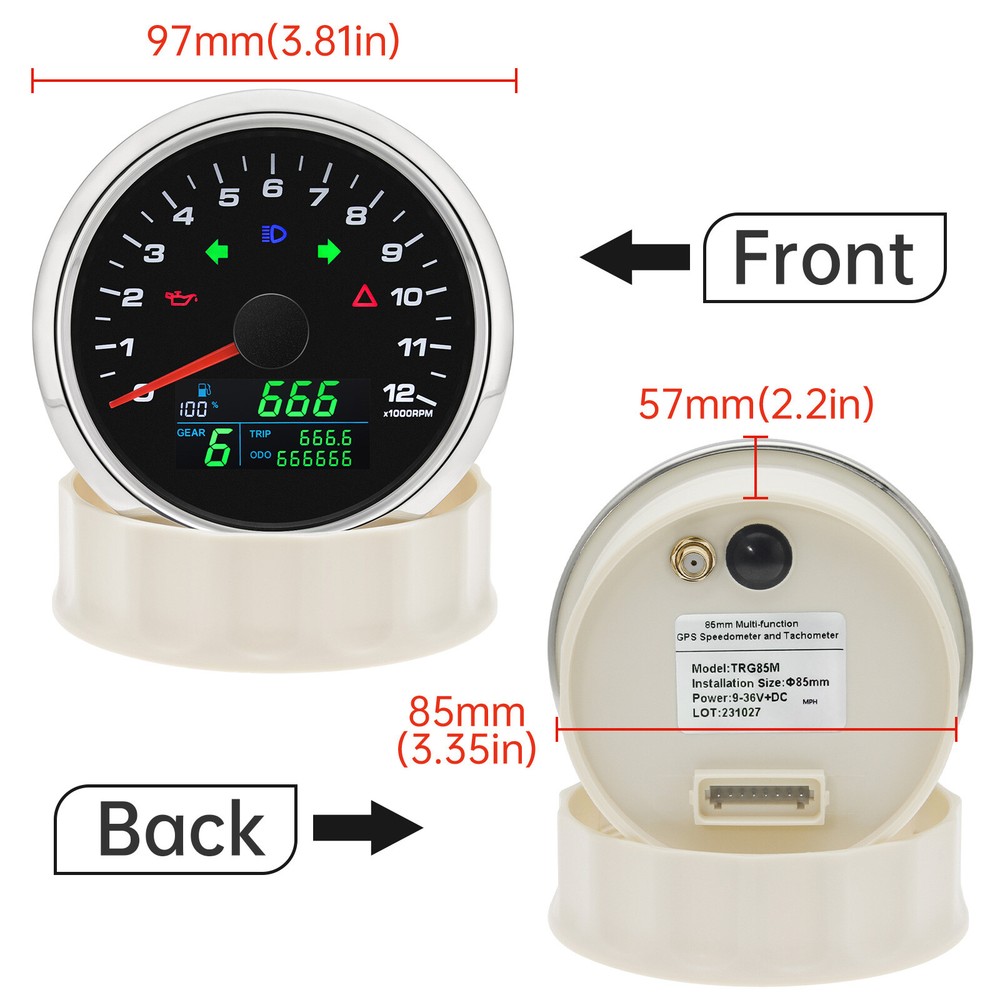 $ 83.436 Gauge Set 85mm GPS Speedometer 120MPH Tachometer 8000RPM with Senders for Boat