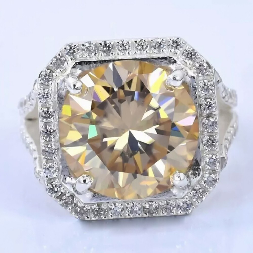 $ 103.1235.20 Ct Round Cut Champagne Treated Diamond Ring in 925 Silver Gift