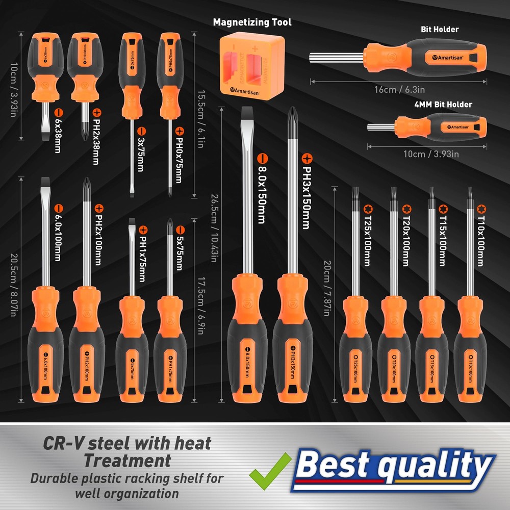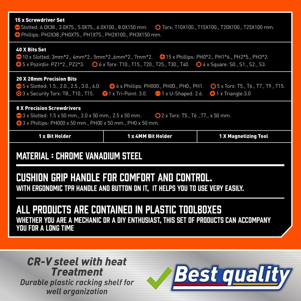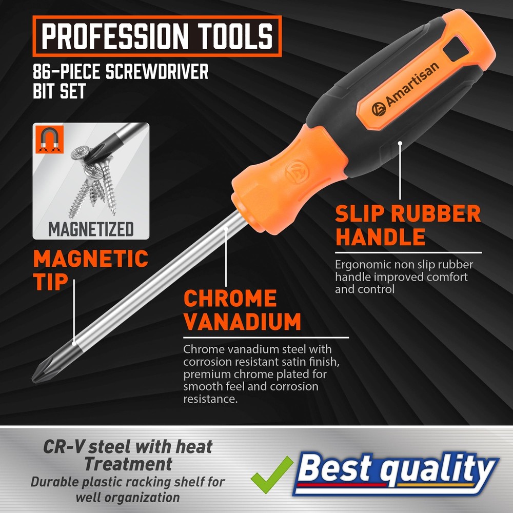 86-Piece Magnetic Screwdrivers Set with Case, Includs Slotted, Phillips, Hex, Pozidriv,Torx and Precision Screwdriver Set, Magnetizer Demagnetizer Tools, Tools for Men . Number of Items 86 Head Style Flat Material Chrome Vanadium Steel Color Yellow Premium materials, Screwdriver bar made of 6150 chromium vanadium steel, stronger and tougher than most carbon steel;it is chromium plating treated for corrosion resisted and nice appearance. 86-piece magnetic screwdriver set consists of 10PC Conventional screwdriver,4PC Torx screwdriver,9PC Precision Screwdriver and 40PC screwdriver bits. including Phillips, Slotted, Torx, Hex and Pozidriv, 20PC Precision bits, 1 Magnetizer Demagnetizer Tools Magnetizer demagnetizer tool,Converts any tool blade to a magnetic retriever of screws, nuts and metallic particles. Ergonomic non-slip and soft handle which is made of pp+tpr materials, let you feel soft and comfortable at work.Each Precision screwdrivers has a 360 degree rotation that allows you rotate the screws smoothly. Equipped with a dedicated storage box for easy carrying. Meet your work needs, Suitable for all kinds of projects,electronics, computers, watch repair, jewelry repair, and fixing anything with micro screws. Premium materials, Screwdriver bar made of 6150 chromium vanadium steel, stronger and tougher than most carbon steel;it is chromium plating treated for corrosion resisted and nice appearance. 86-Piece Magnetic Screwdrivers Set with Case, Includs Slotted, Phillips, Hex, Pozidriv,Torx and Precision Screwdriver Set, Magnetizer Demagnetizer Tools, Tools for Men 86-Piece Magnetic Screwdrivers Set with Case, Includs Slotted, Phillips, Hex, Pozidriv,Torx and Precision Screwdriver Set, Magnetizer Demagnetizer Tools, Tools for Men 86-Piece Magnetic Screwdrivers Set with Case, Includs Slotted, Phillips, Hex, Pozidriv,Torx and Precision Screwdriver Set, Magnetizer Demagnetizer Tools, Tools for Men 86-Piece Magnetic Screwdrivers Set with Case, Includs Slotted, Phillips, Hex, Pozidriv,Torx and Precision Screwdriver Set, Magnetizer Demagnetizer Tools, Tools for Men 86-Piece Magnetic Screwdrivers Set with Case, Includs Slotted, Phillips, Hex, Pozidriv,Torx and Precision Screwdriver Set, Magnetizer Demagnetizer Tools, Tools for Men Shipping We offer FREE shipping on all orders! We ship within Three business days of payment, usually sooner. We use a selection of shipping services such as UPS, FedEx, USPS etc. We only ship to the lower 48 states, no APO/FPO addresses or PO Boxes allowed. Local pickups and combined shipping options are not provided at this time. Return You can return a product for up to 30 days from the date you purchased it. Any product you return must be in the same condition you received it and in the original packaging. Please keep the receipt. Payment We accept payment by any of the following methods: Payoneer Please pay as soon as possible after winning an auction, as that will allow us to post your item to you sooner! Feedback Customer satisfaction is very important to us. If you have any problem with your order, please contact us and we will do our best to make you satisfied. Contact Us If you have any queries, please contact us via ebay. We usually respond within 24 hours on weekdays.