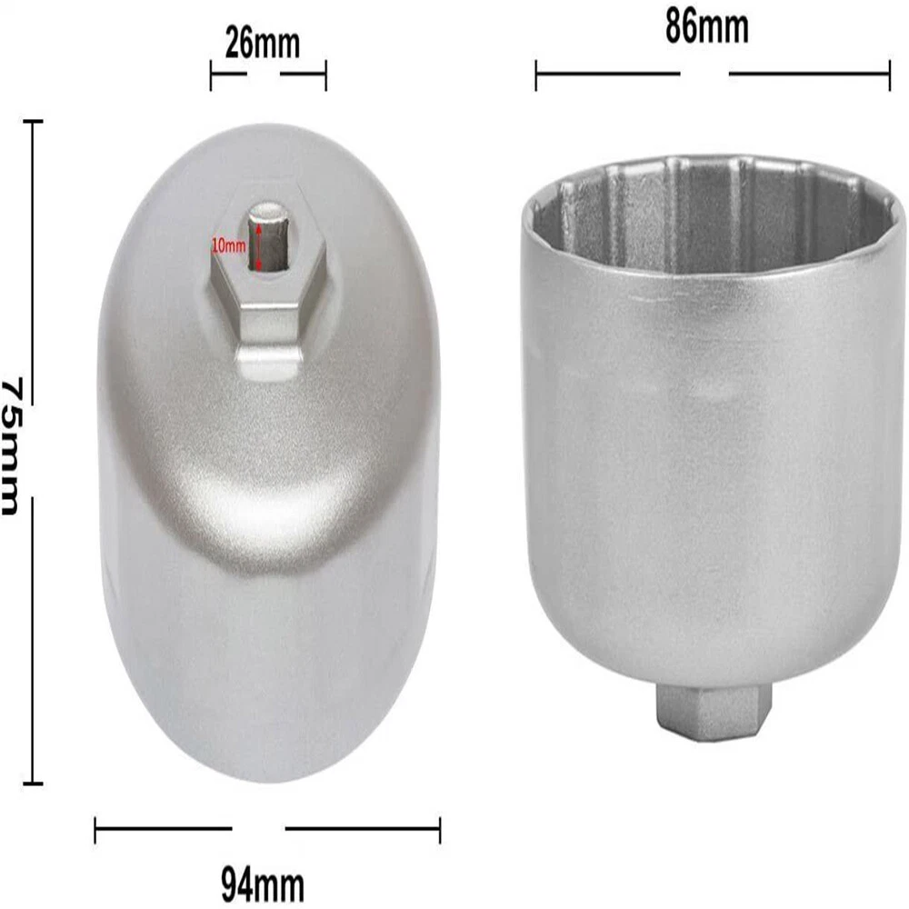 16 Flutes x 86 MM x 3/8" Drive Ratchet The hex drive design can help to loosen those caps over torqued or hard to remove Beautiful silver Anodized Finish Polished sliver surface with excellent corrosion resistance performance keeps the wrench in good condition Easy for Removal and Installation Maximum torque with six contact points to prevent slip and would not break or damage fragile plastic filter cartridges Please verify the size of your oil filter housing cap before ordering. Fits BMW: 128i, 135i, 135is, 228i, 320i, 325i, 325xi, 328i, 330i, 335i, 335is, 335xi, 428i, 435i, 525i, 525xi, 528i, 528xi, 530i, 530xi, 535i, 535xi, 640i, 740i, 740li, Active Hybrid 3, Active Hybrid 5, Active Hybrid 7, M325i, M3, M4, X1, X3, X4, X5, X6, and Z4 Fits Volvo: C70, S40, S60, S70, S80, V40, V70, XC70, and XC90 (not for Volvo 3.2L 6-cylinder engine)