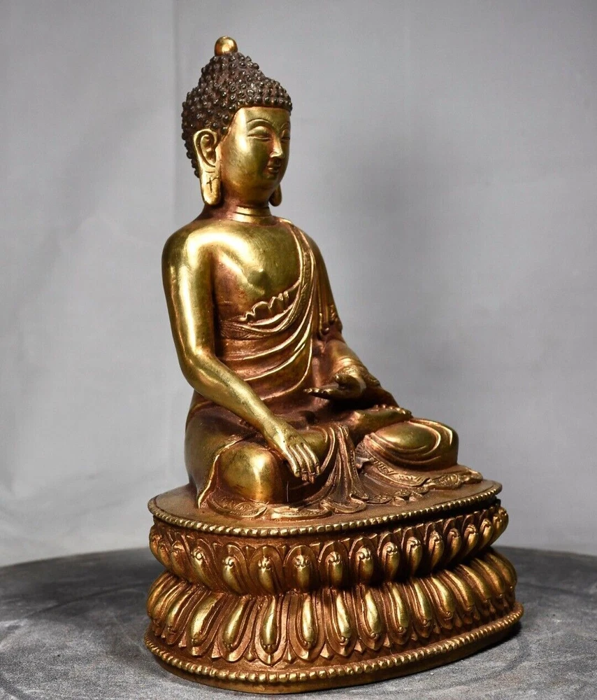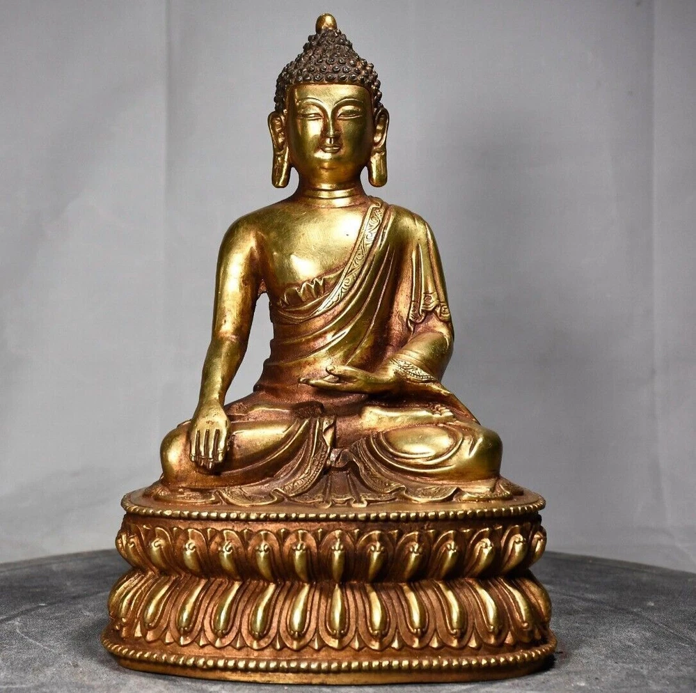 Size: Height: 22cm Wide: 14cm weight: 1.7kg Material: bronze gilt NOTE: Withno wood stand!!!! Condition: Good condition Origin: China