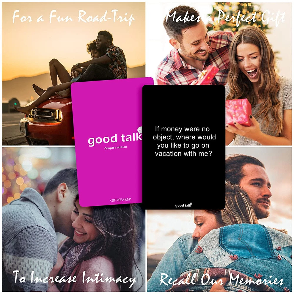 GAMES FOR COUPLES: Whether you just Started Dating or have been Married for Decades, Our Couples Game Cards will be a Sure Fire Way to get the Sparks Flying Between You Two! Get to Know Each Other Better as you dive into Meaningful Conversations and perform Funny Challenges. QUALITY TIME WITH YOUR PARTNER: Put aside the Day-to-Day Thoughts and Worries and Focus only on the Game and your Partner. A Fun Way to Create Deeper Understanding & Strengthen your Relationship & Connection. It will also be Perfect for Multiple Occasions – Dating, Engaged Couples, Wedding, Anniversaries, Bridal Showers, Newlyweds, Valentine’s Day, etc. SIMPLE RULES: With No Complicated Rules, you and your partner can Start Playing Right Away. Simply give the Cards a Good Shuffle and Take Turns Drawing from the Pile, One Person Reads the Question, and the Other Give His / Her Answer. This is YOUR TIME Enjoy It Together! A Perfectly Simple Present: Each Product is thoughtfully enclosed in Sophisticated Packaging, ensuring it arrives in Perfect Condition and Ready to be Presented as a Delightful Gift. The High-Quality Wrapping not only Adds to the Charm of your Present but also Safeguards the Art against any Transport Damage. Your Happiness, Our Promise: We're Committed to Your Contentment. Should there be any dissatisfaction with your order, Rest Assured, we're here to Make Things Right. Whether it's a complete Refund or a Brand-new Replacement you seek, no questions asked. Our aim is to Enhance those Precious Moments with your Dear ones through our Innovative and Distinctive Designs. Fun Conversation Cards Game for Couples